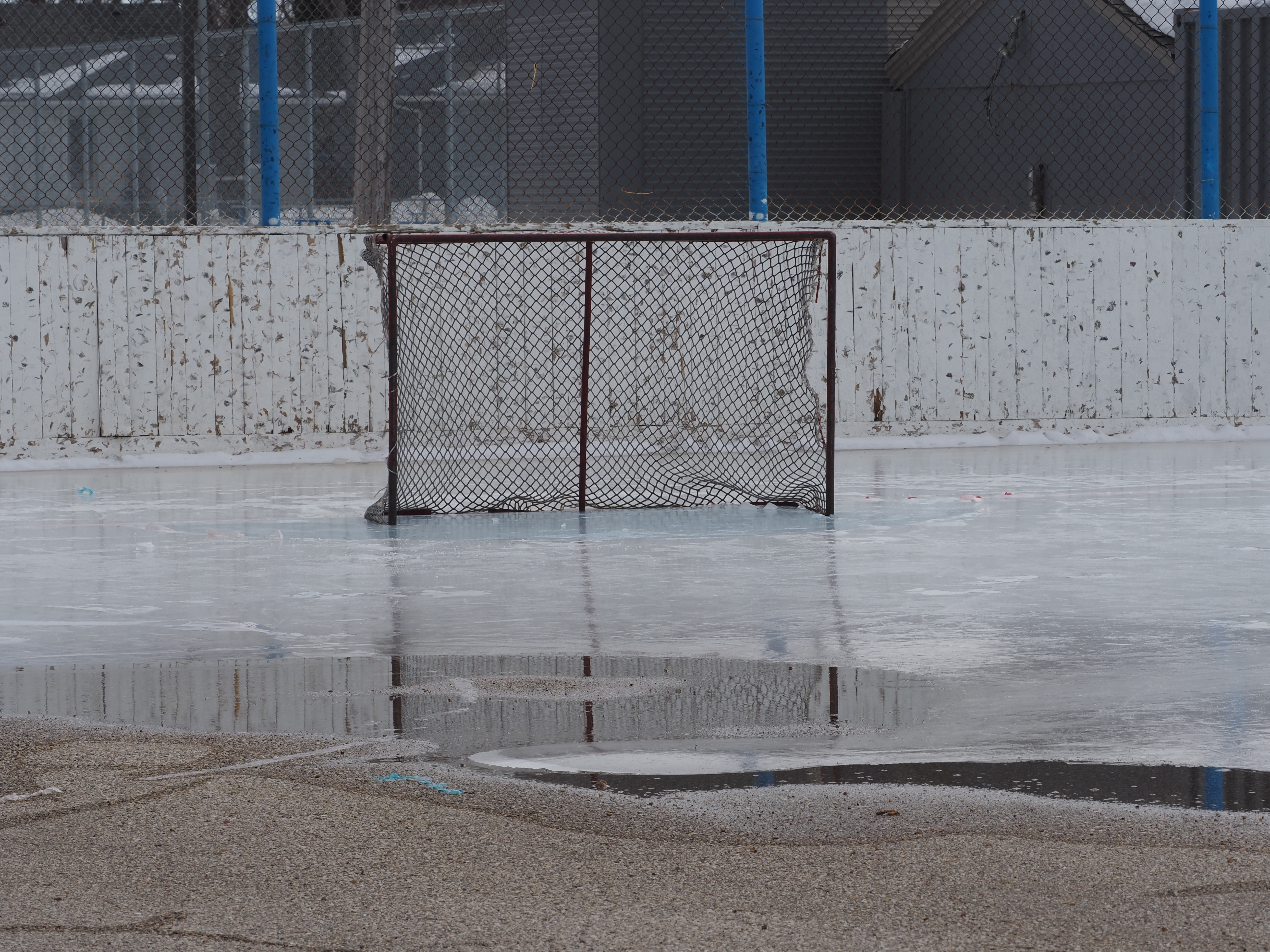 - #architecture/rink #material/concrete #object/net/hockey #photo-a-day/2023 #place/Canada/Manitoba/Winnipeg/River Heights #water/frozen/ice #water/surface/transient/puddle