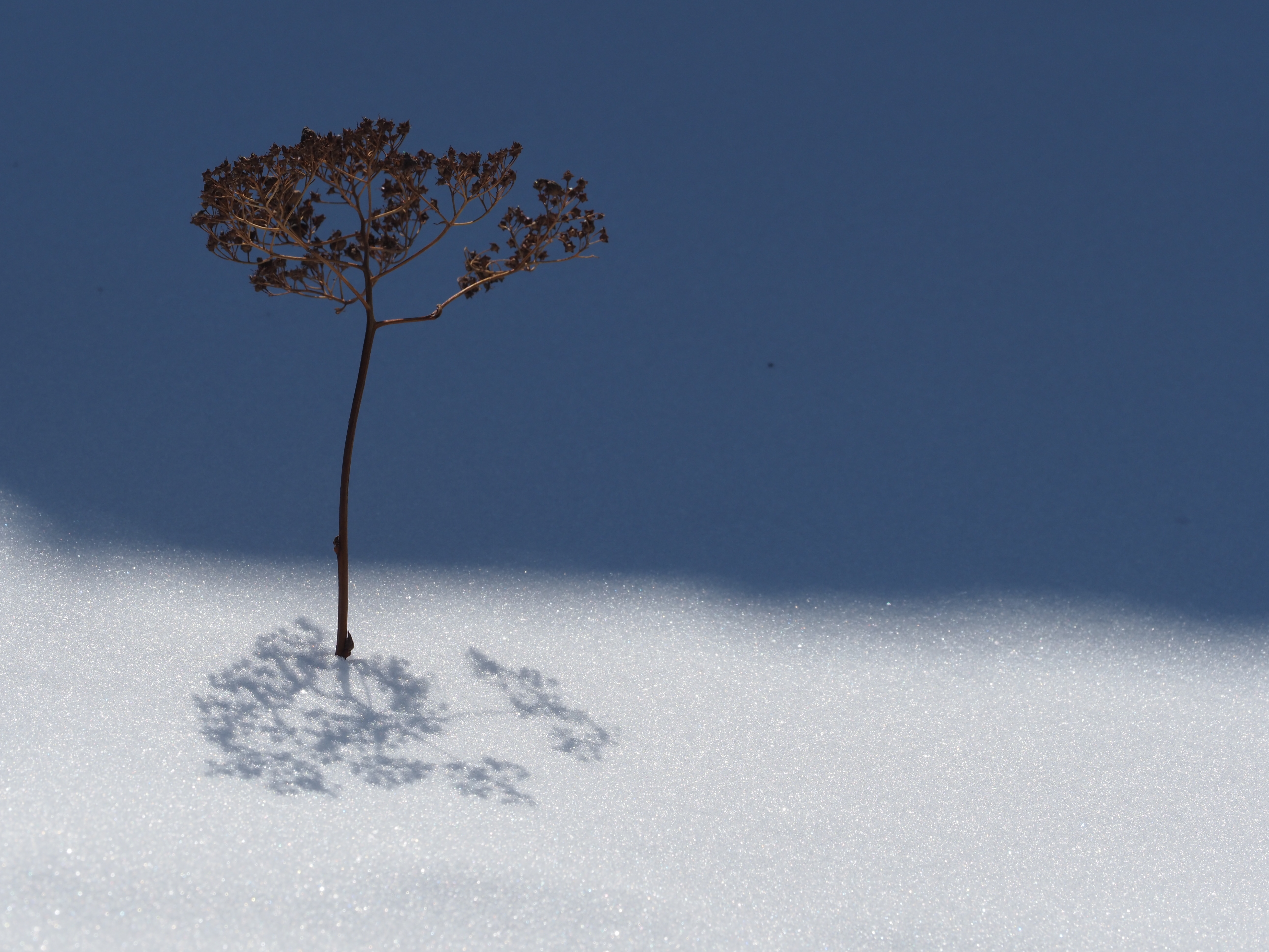 - #photo-a-day/2023 #place/Canada/Manitoba/Winnipeg/River Heights #plants/forb/Sedum #plants/part/flower/wilted #shadow #water/frozen/snow