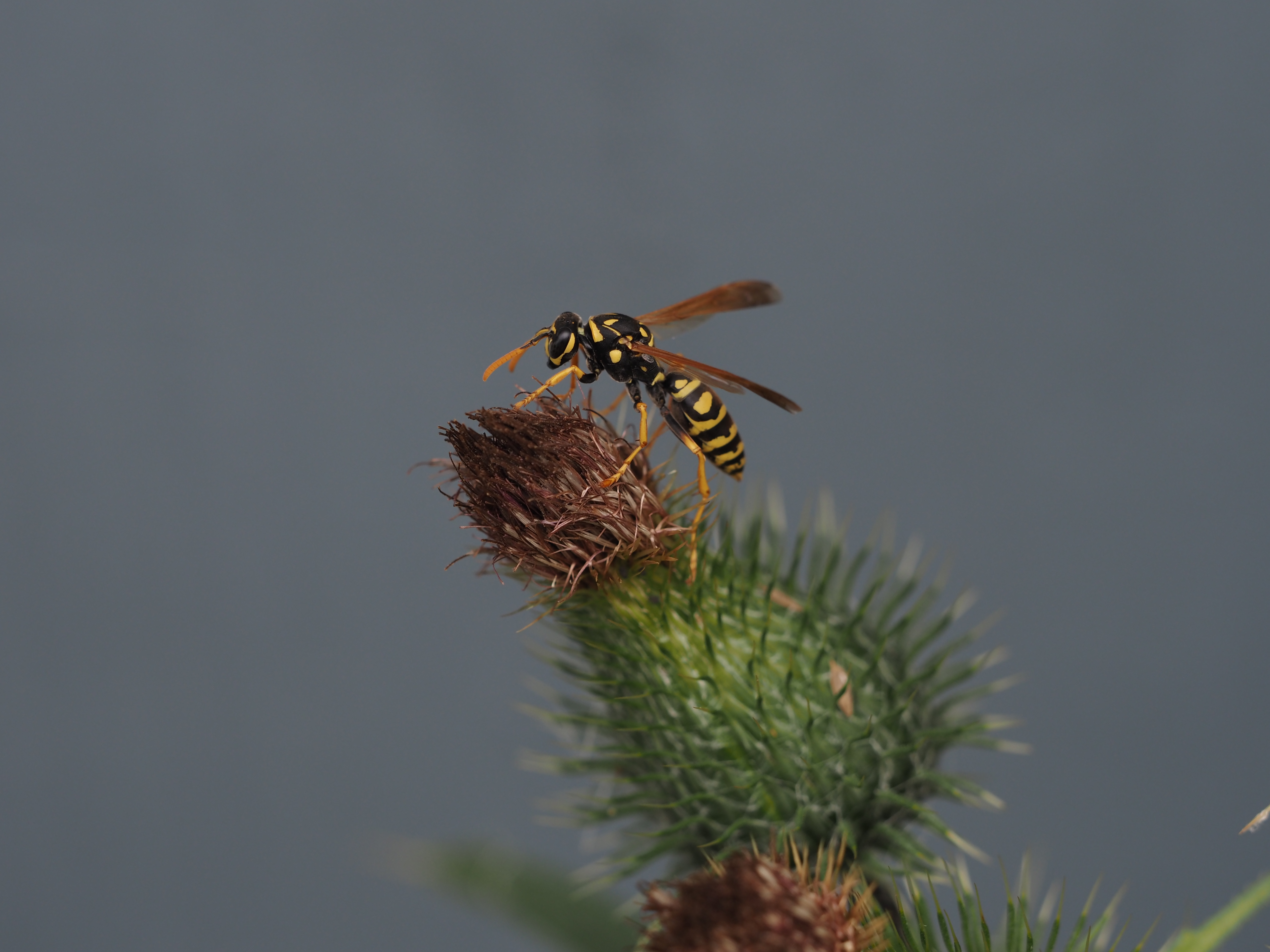 - #animals/insect/wasp/European Paper #photo-a-day/2023 #place/Canada/Manitoba/Winnipeg/River Heights #plants/forb/thistle/Scottish #plants/part/flower