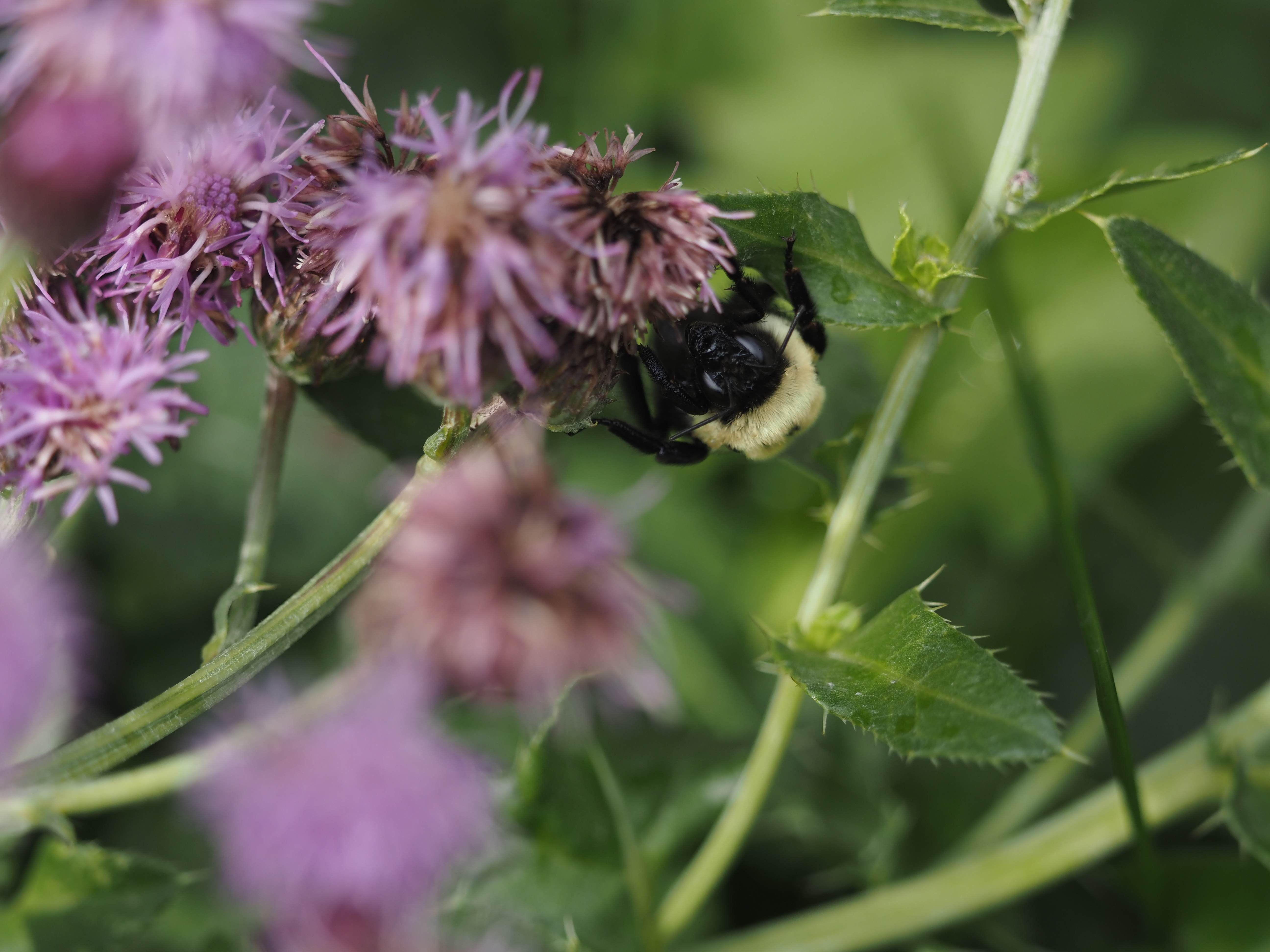 - a bee sleeping on wilted flowers
