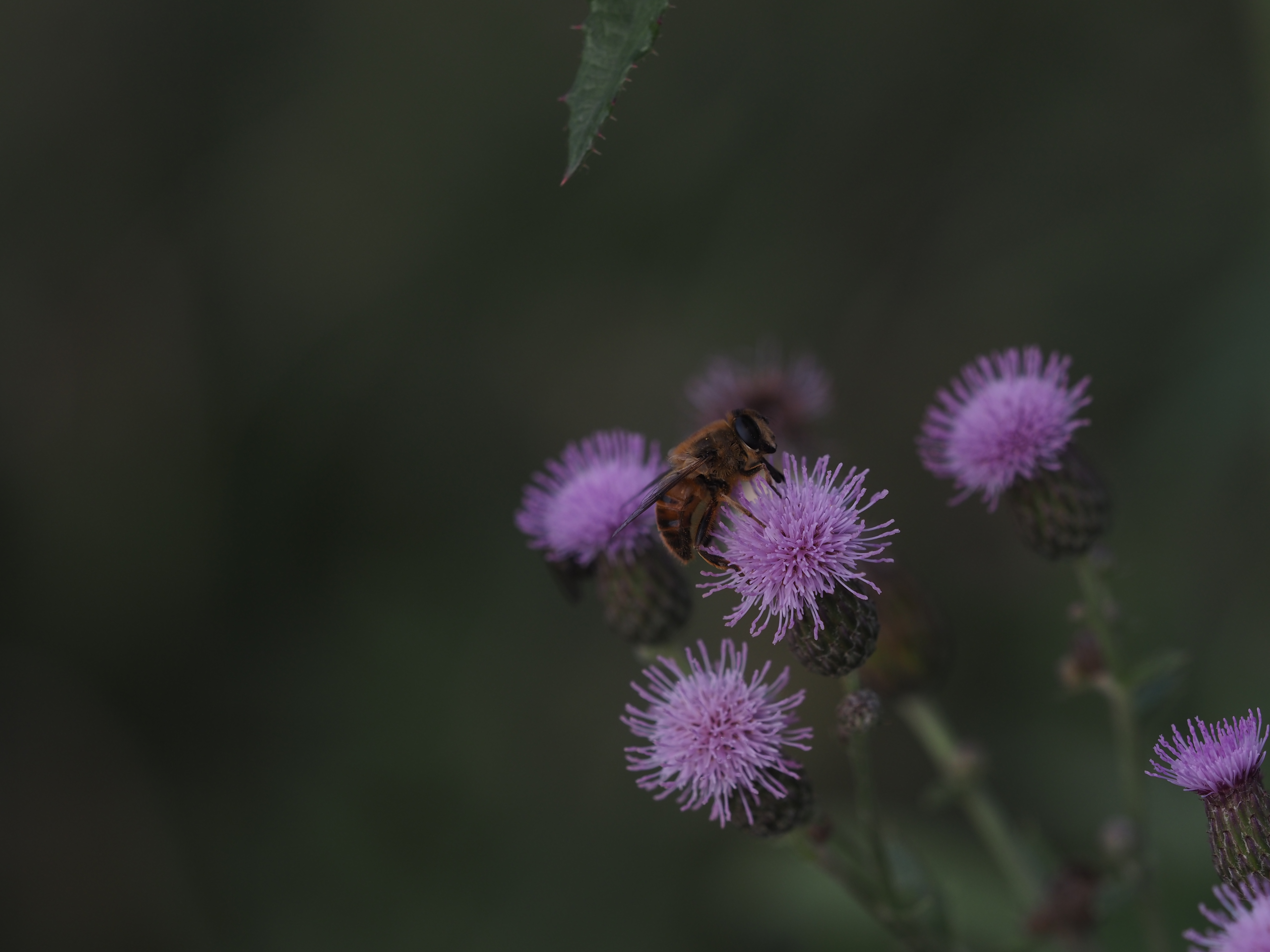 - #animals/insect/fly/hover #architecture/bridge/Winnipeg/St. Boniface #plants/forb/thistle/Marsh #plants/part/flower