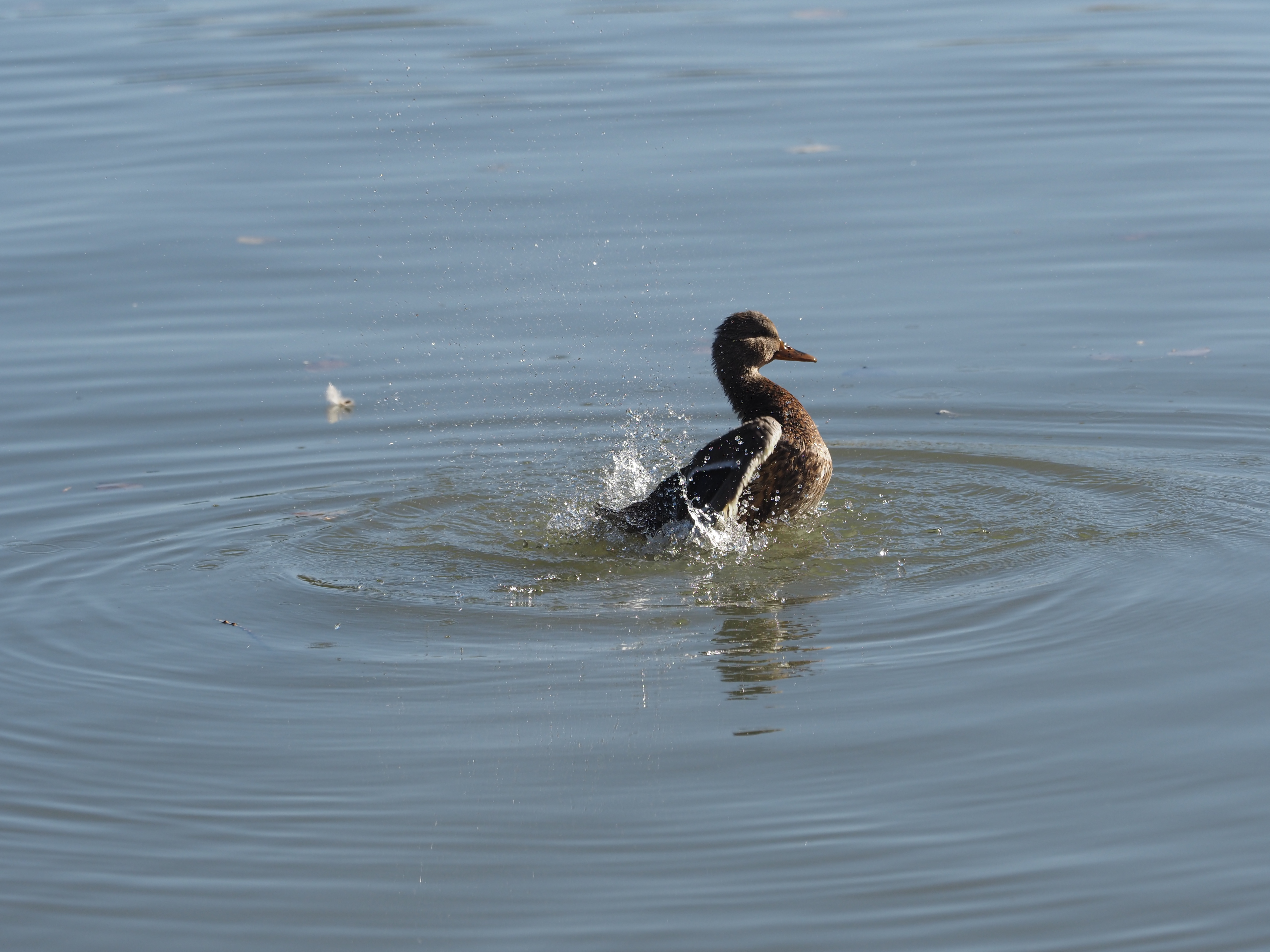 - #actions/preening #actions/splashing #animals/bird/duck #place/Canada/Manitoba/Winnipeg/parks/The Forks #water/ripples #water/surface/flowing/river/Assinaboine