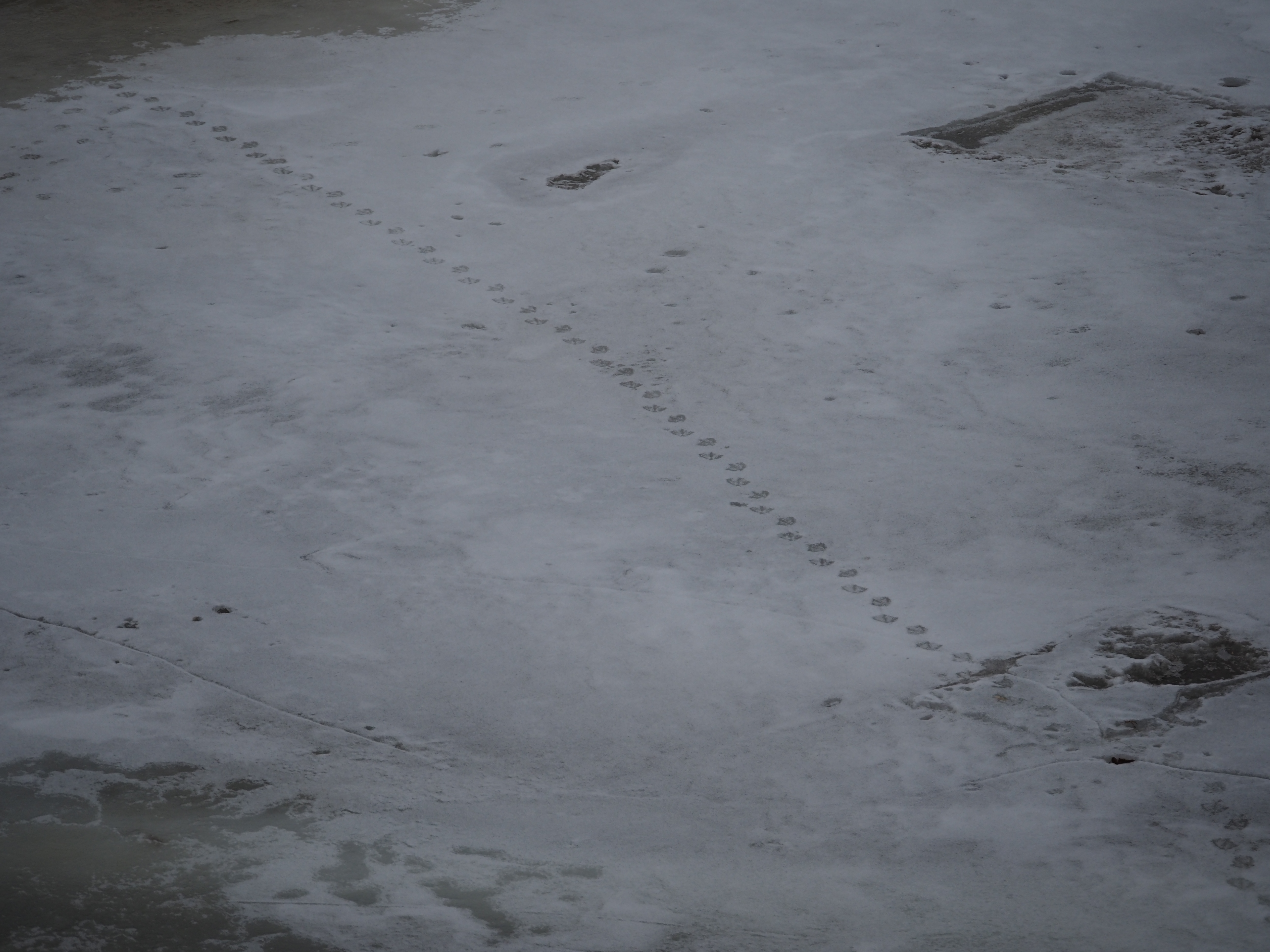 - #paths/tracks/footprints/goose #water/frozen/ice #water/frozen/snow #water/surface/flowing/river/Assinaboine