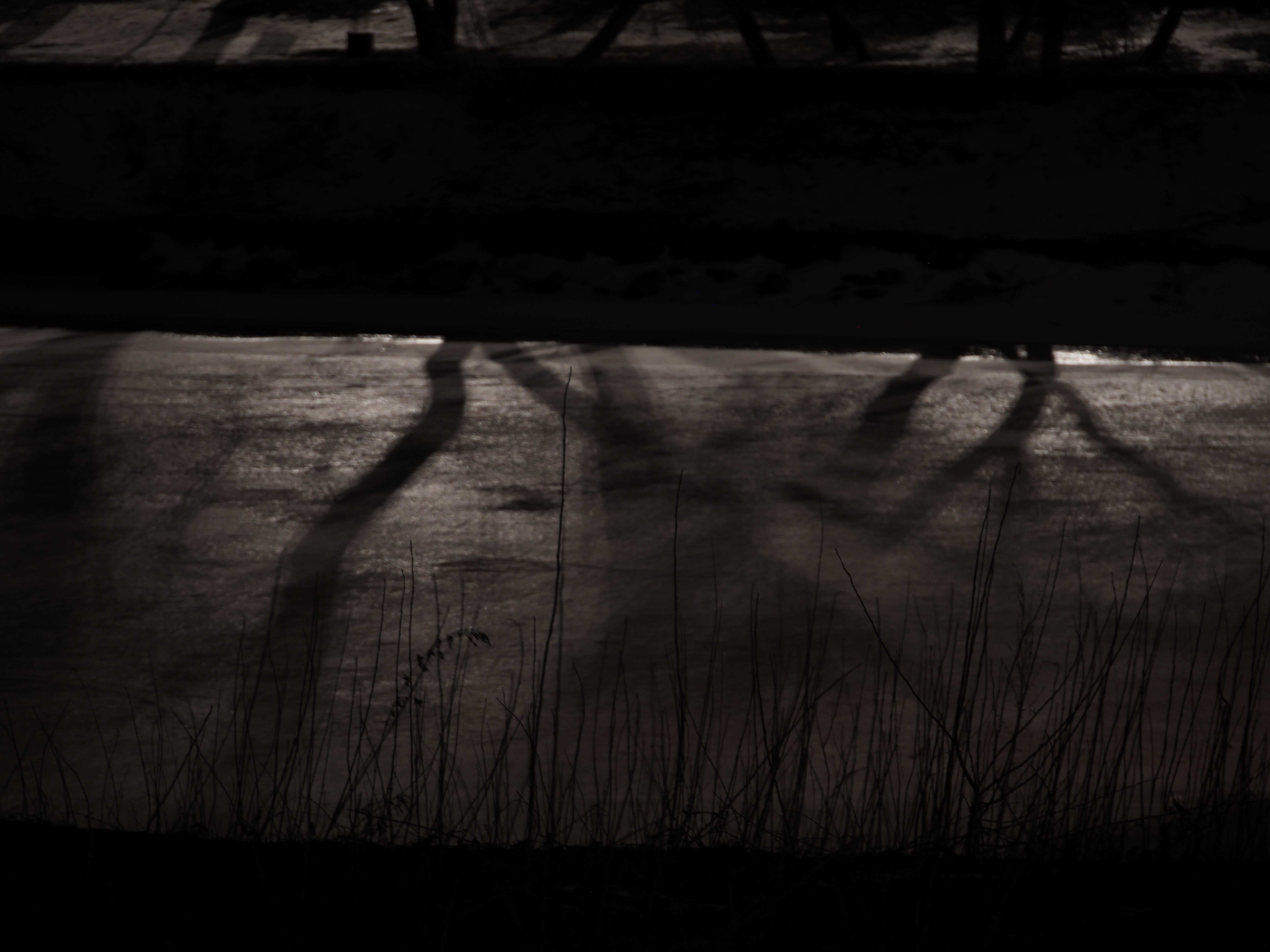 - #place/Canada/Manitoba/Winnipeg/Wolseley #plants/tree #shadow #water/frozen/ice #water/surface/flowing/river/Assinaboine