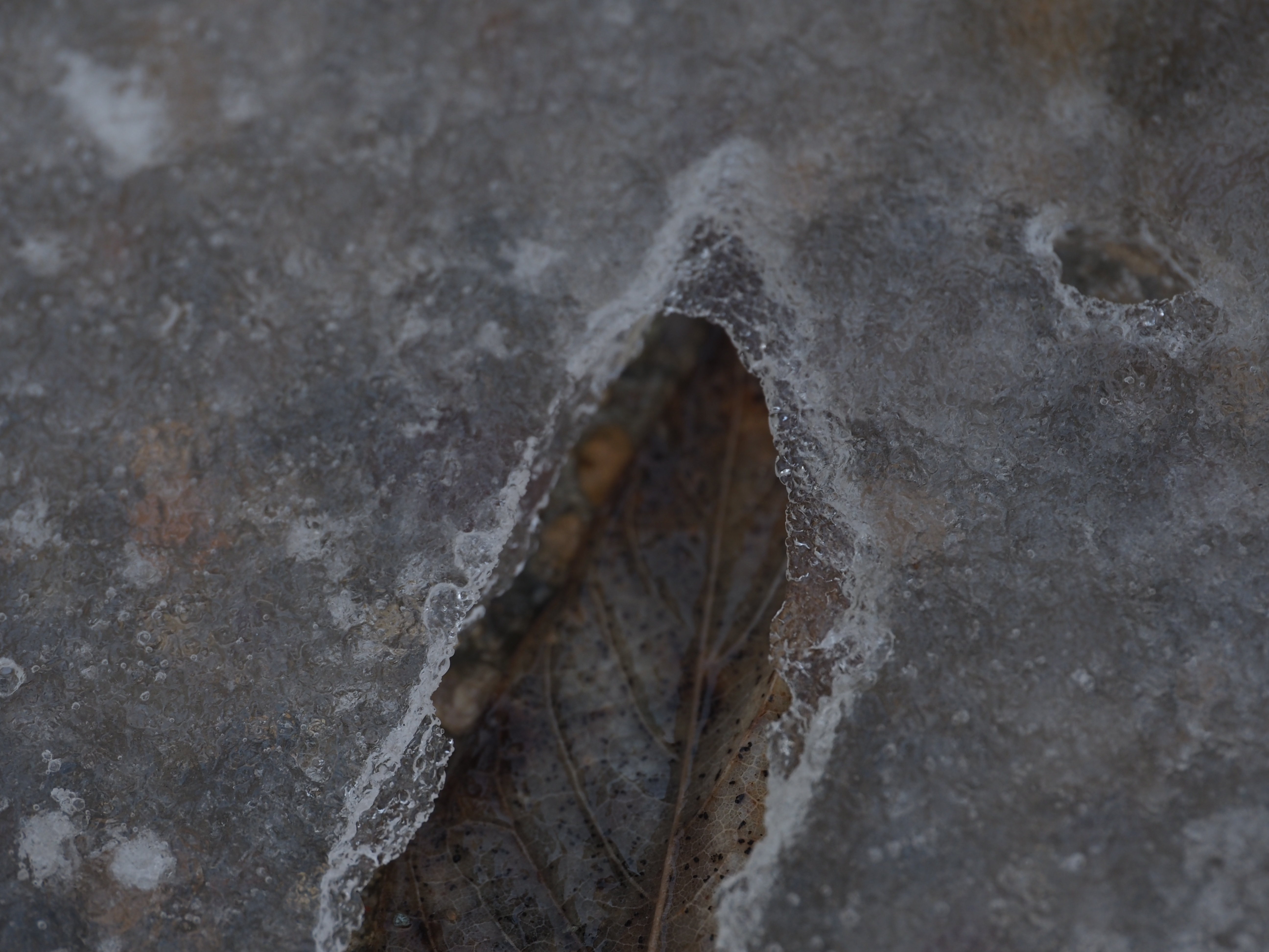 - #hole #place/Canada/Manitoba/Winnipeg/River Heights #plants/part/leaf/fallen #water/frozen/ice