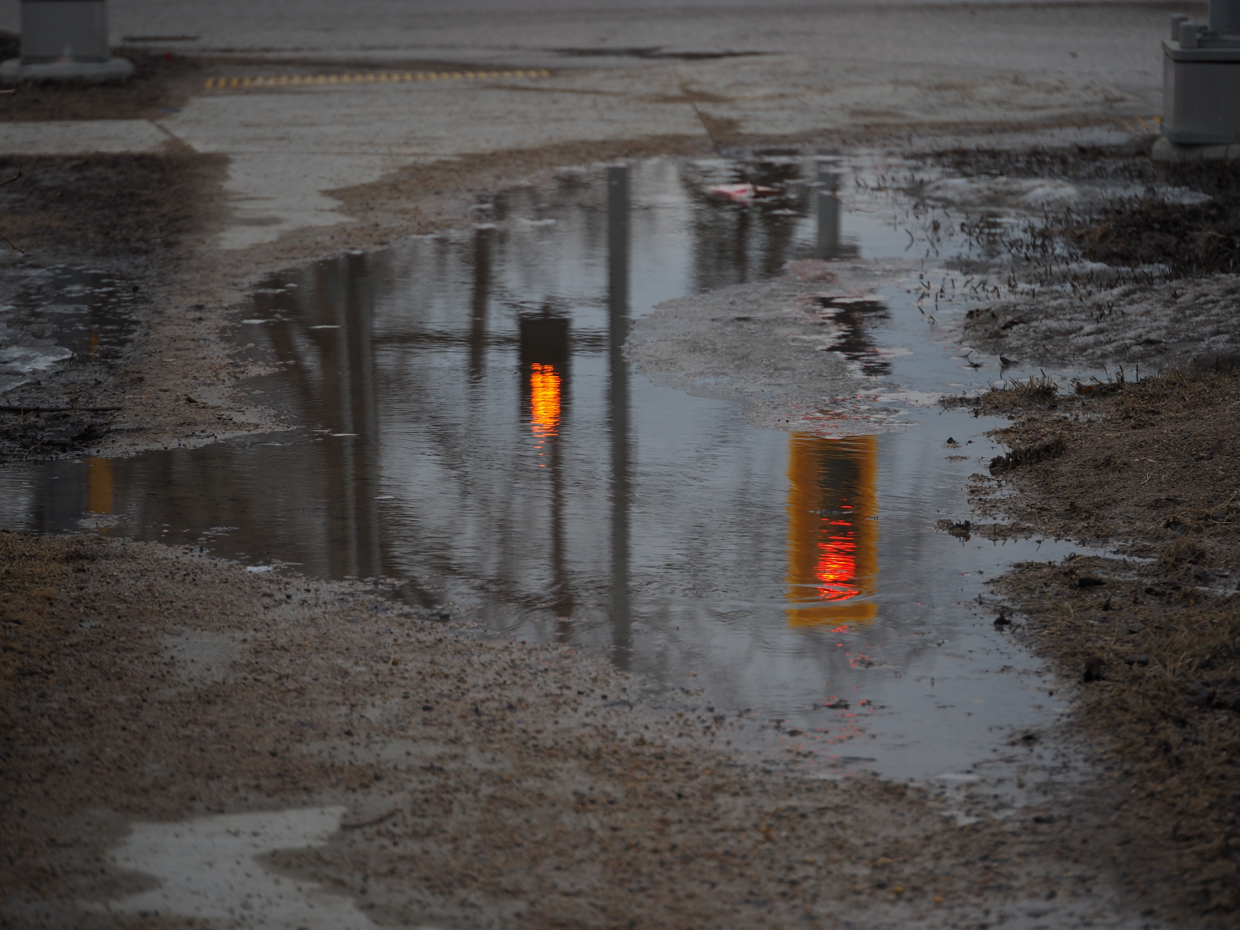 - #architecture/stoplight #camera/blur #paths/sidewalk #place/Canada/Manitoba/Winnipeg/River Heights #reflection #water/surface/transient/puddle
