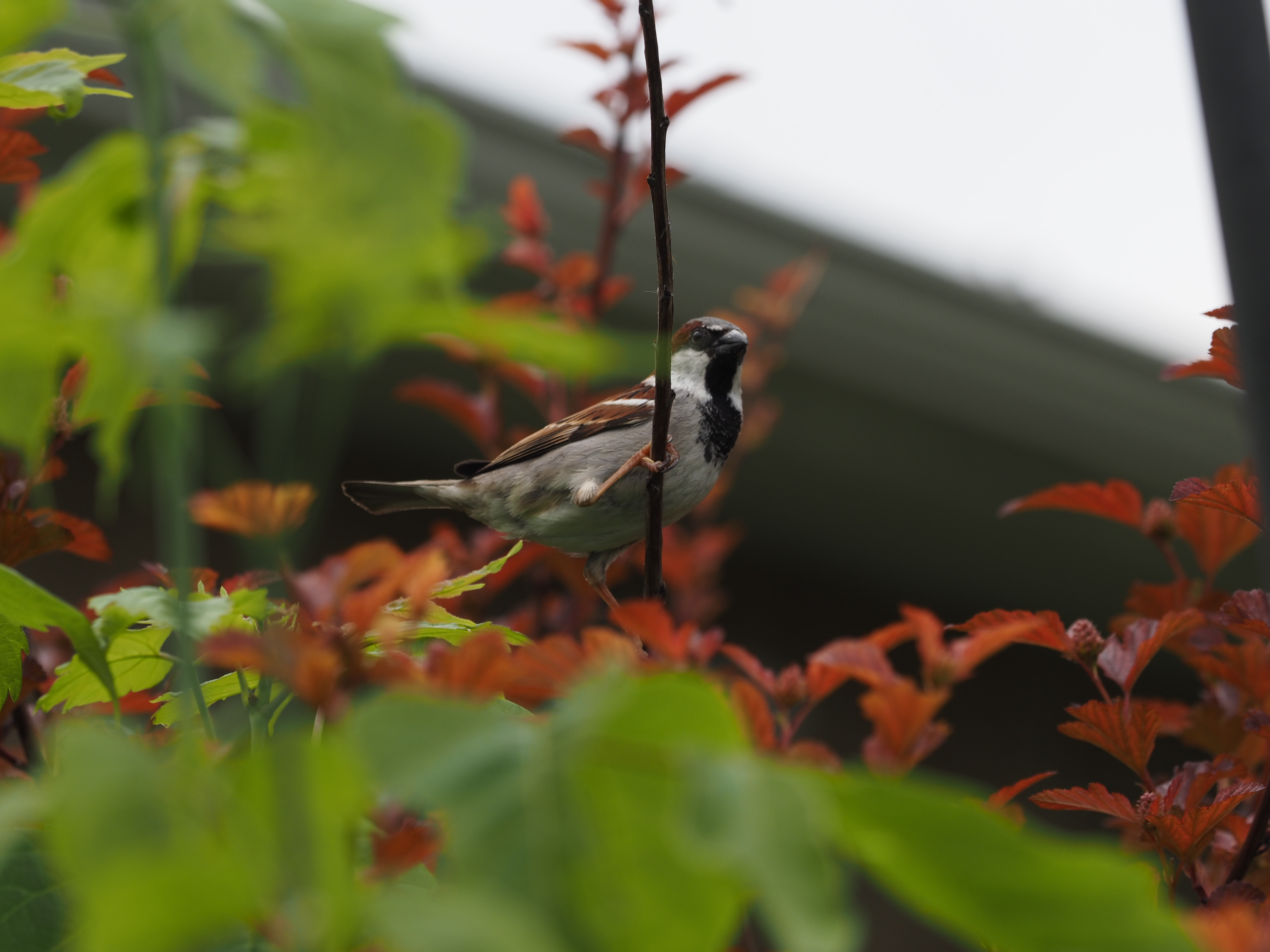 - #animals/bird/Sparrow #place/Canada/Manitoba/Winnipeg/River Heights #plants/shrub
