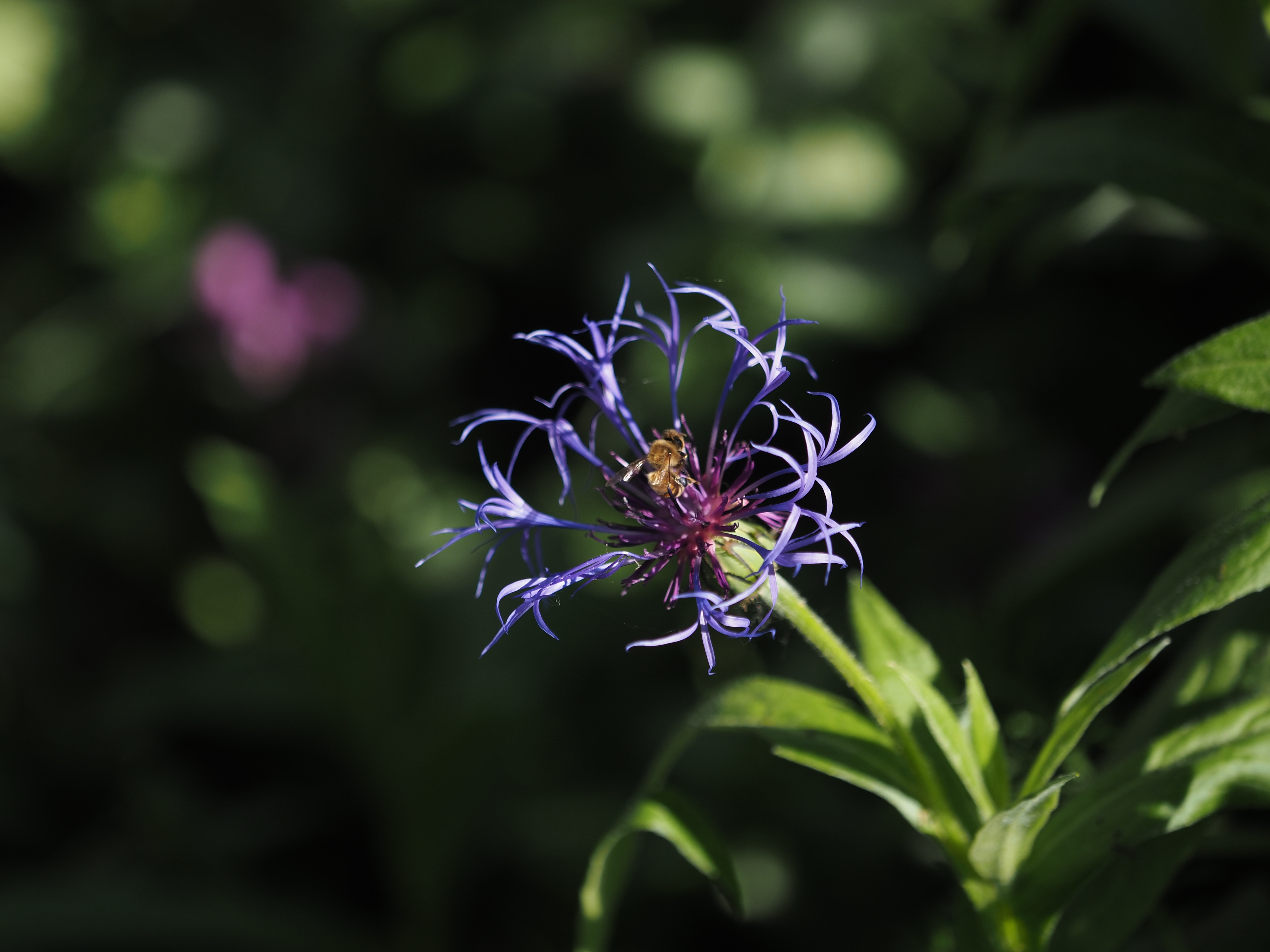 - #animals/insect/bee #place/Canada/Manitoba/Winnipeg/River Heights #plants/forb/Bachelor's Button #plants/part/flower
