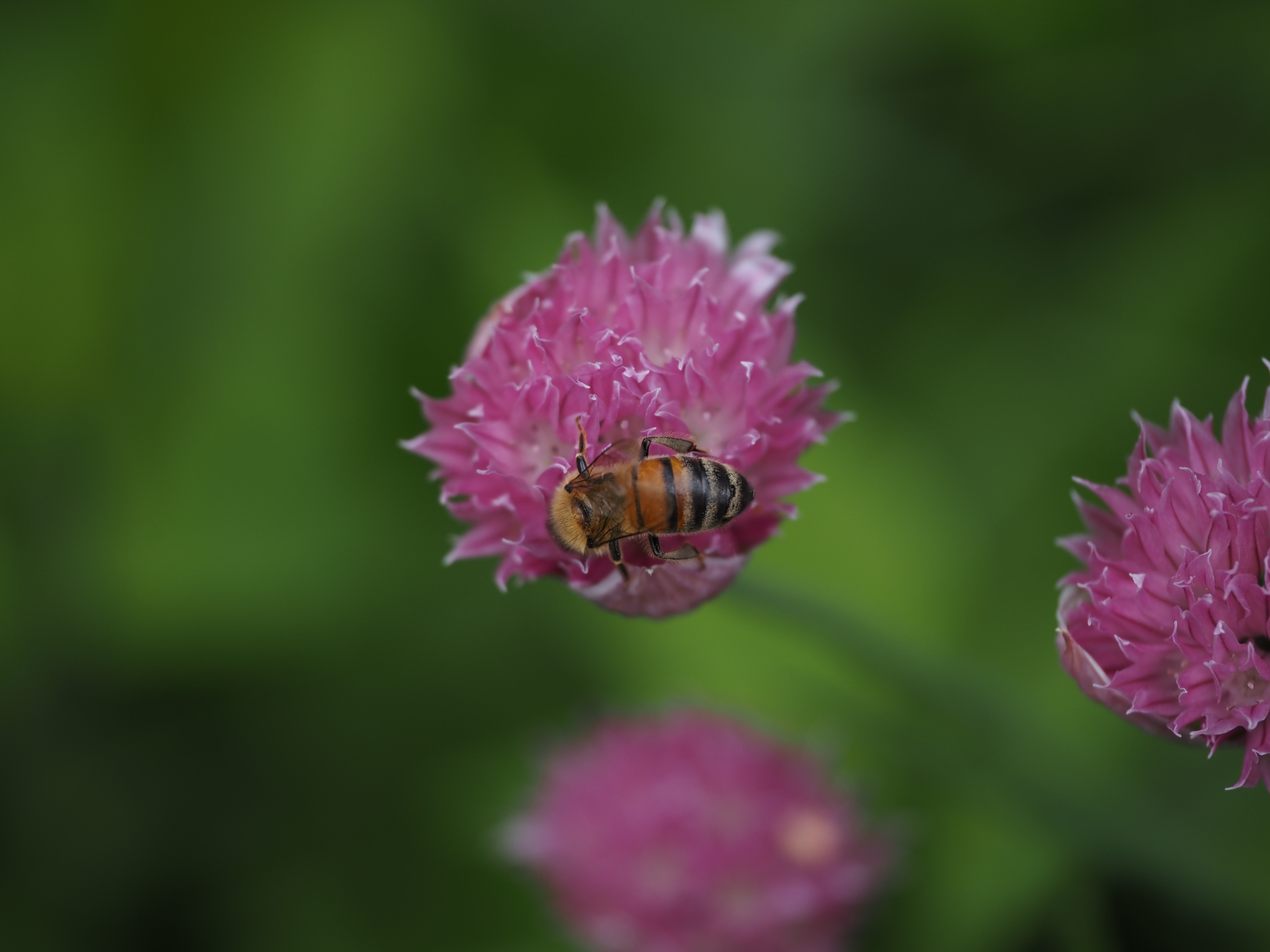 - #animals/insect/bee/honey #place/Canada/Manitoba/Winnipeg/Fort Richmond #plants/forb/Chive #plants/part/flower