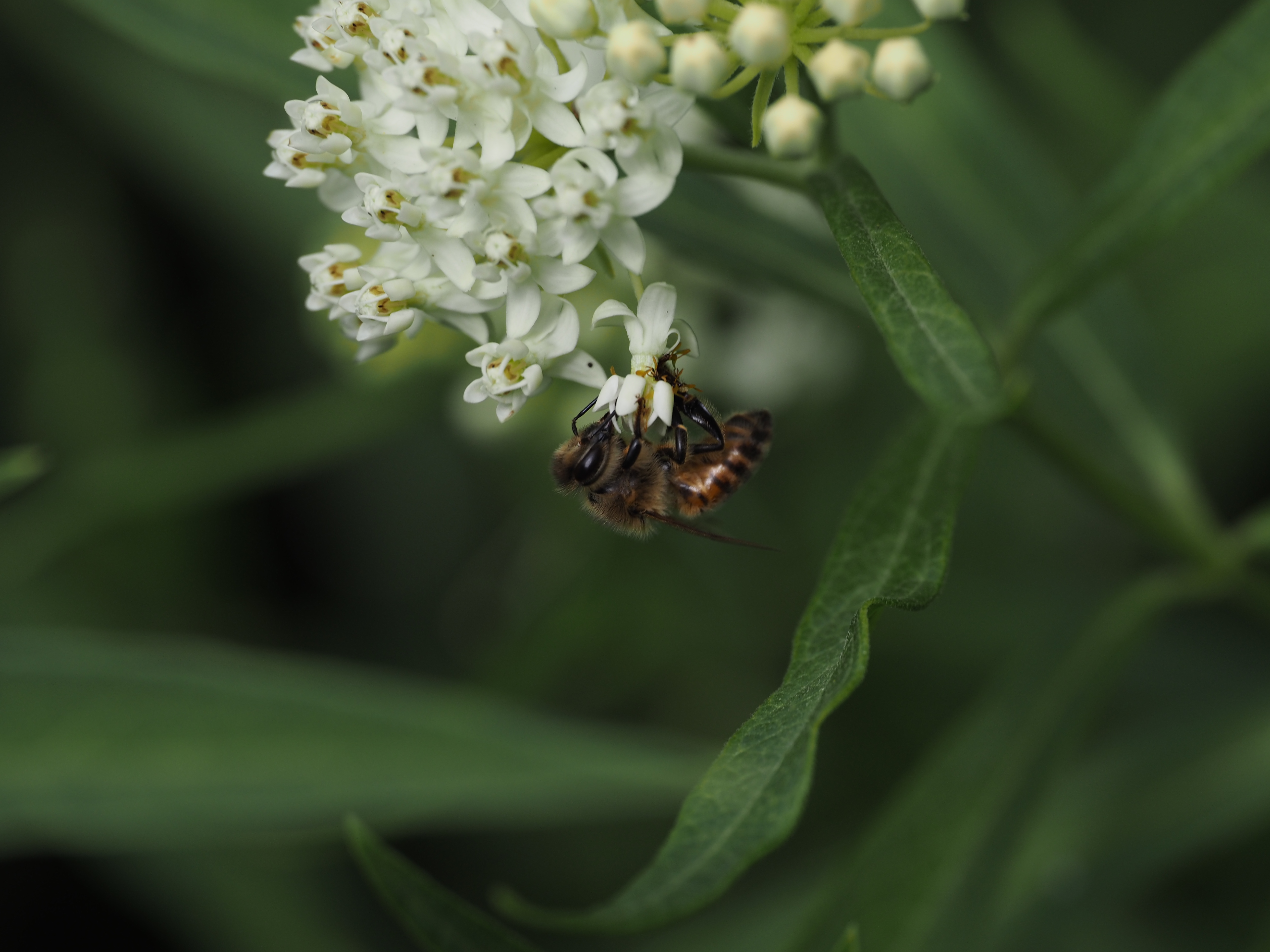 - #animals/insect/bee #place/Canada/Manitoba/Winnipeg/Fort Richmond #plants/forb/Milkweed #plants/part/flower