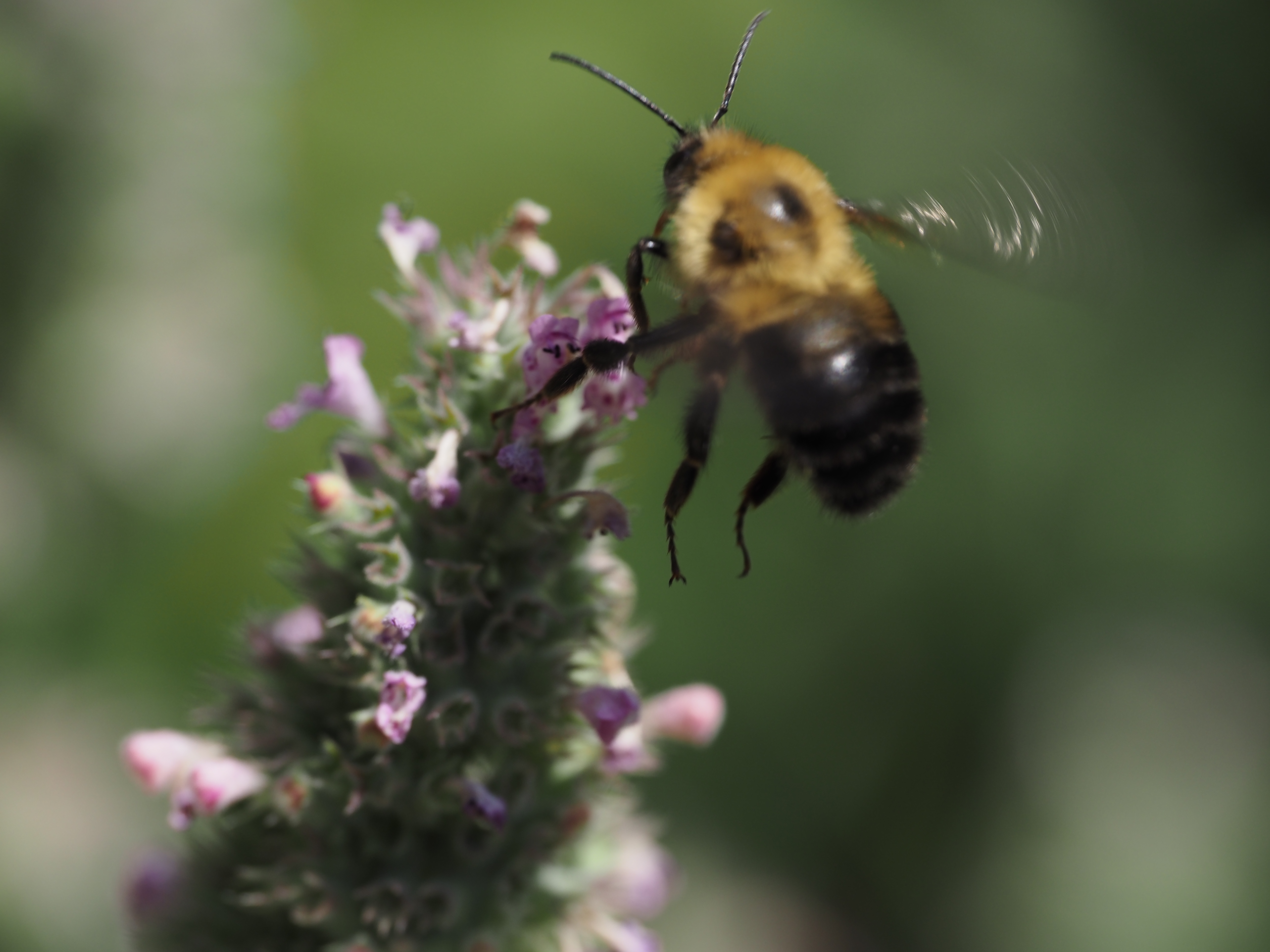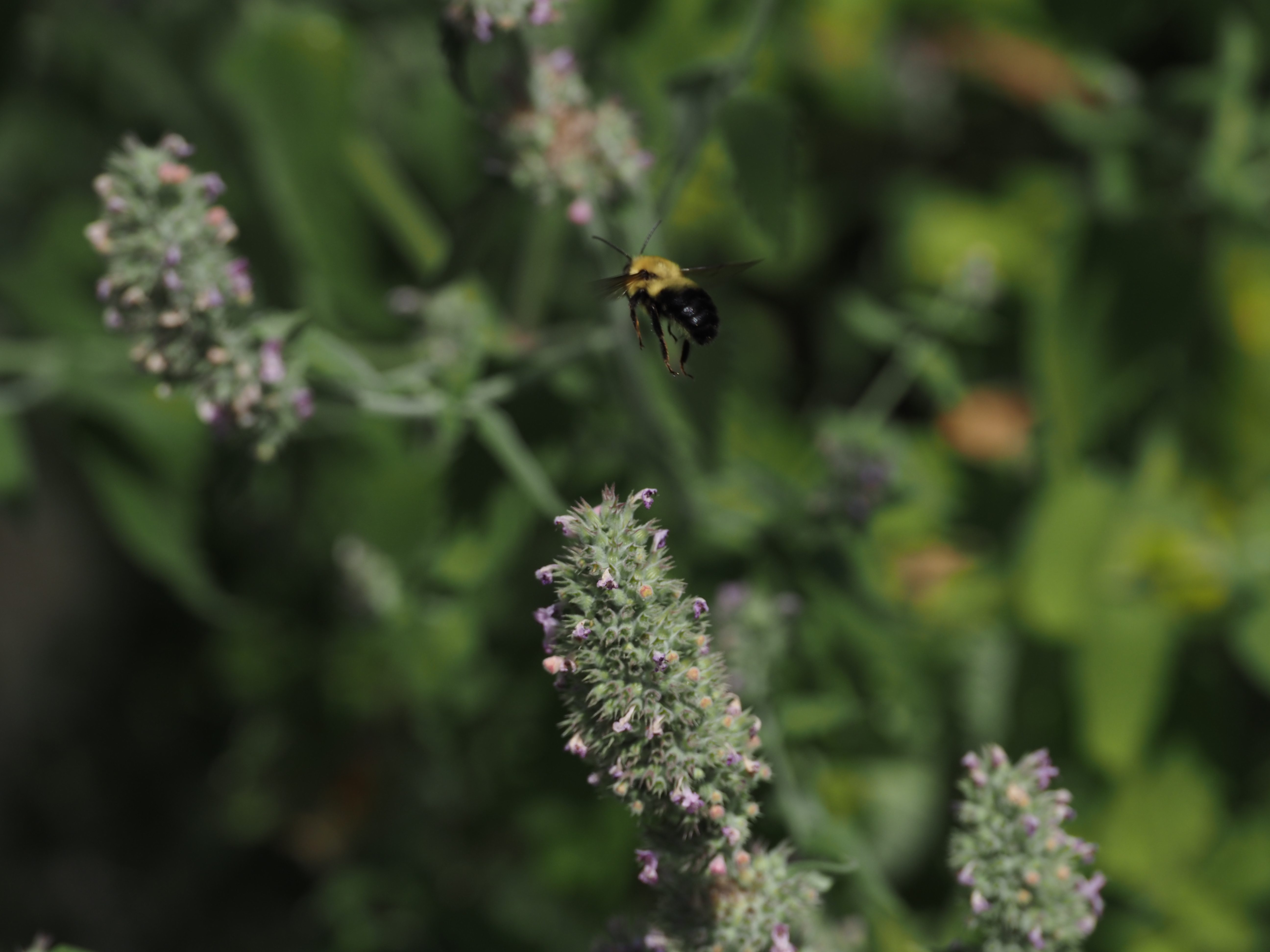 - #actions/flying #animals/insect/bee/bumble #place/Canada/Manitoba/Winnipeg/River Heights #plants/forb/mint #plants/part/flower