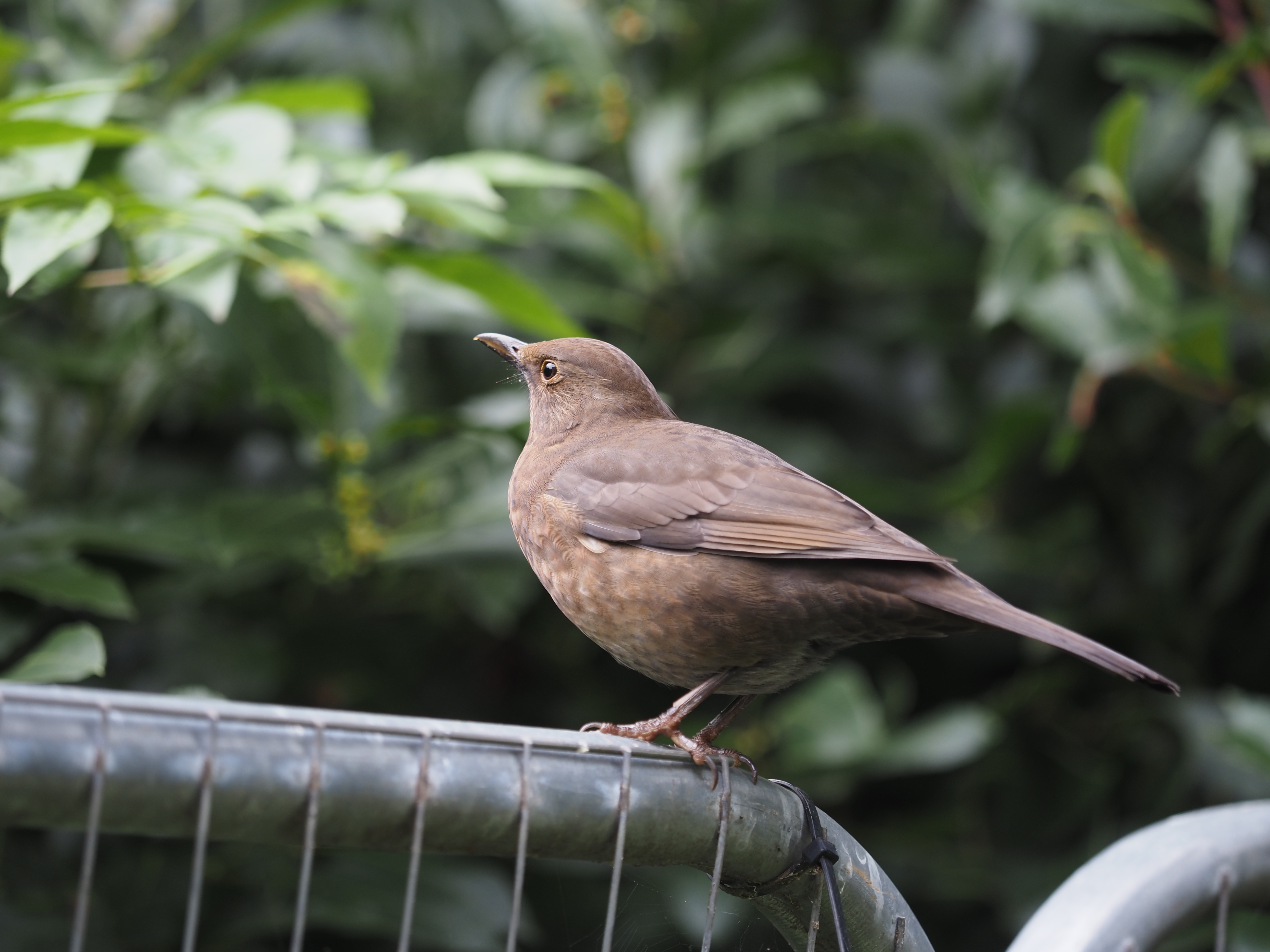 - #animals/bird/Thrush/Blackbird/female #architecture/fence #place/UK/England/London/parks/St Georges Garden