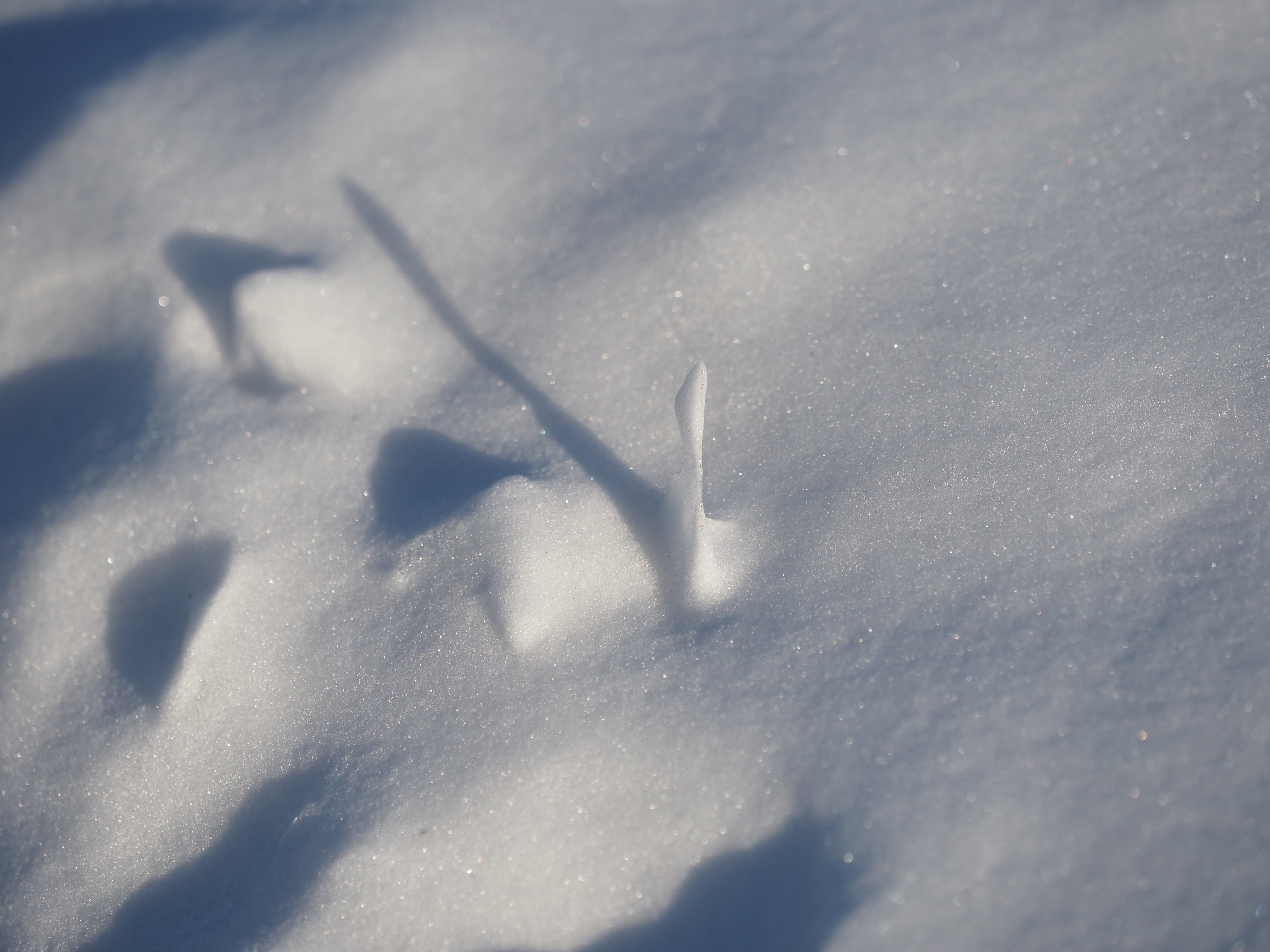 - a thin chunk of snow casting a long shadow