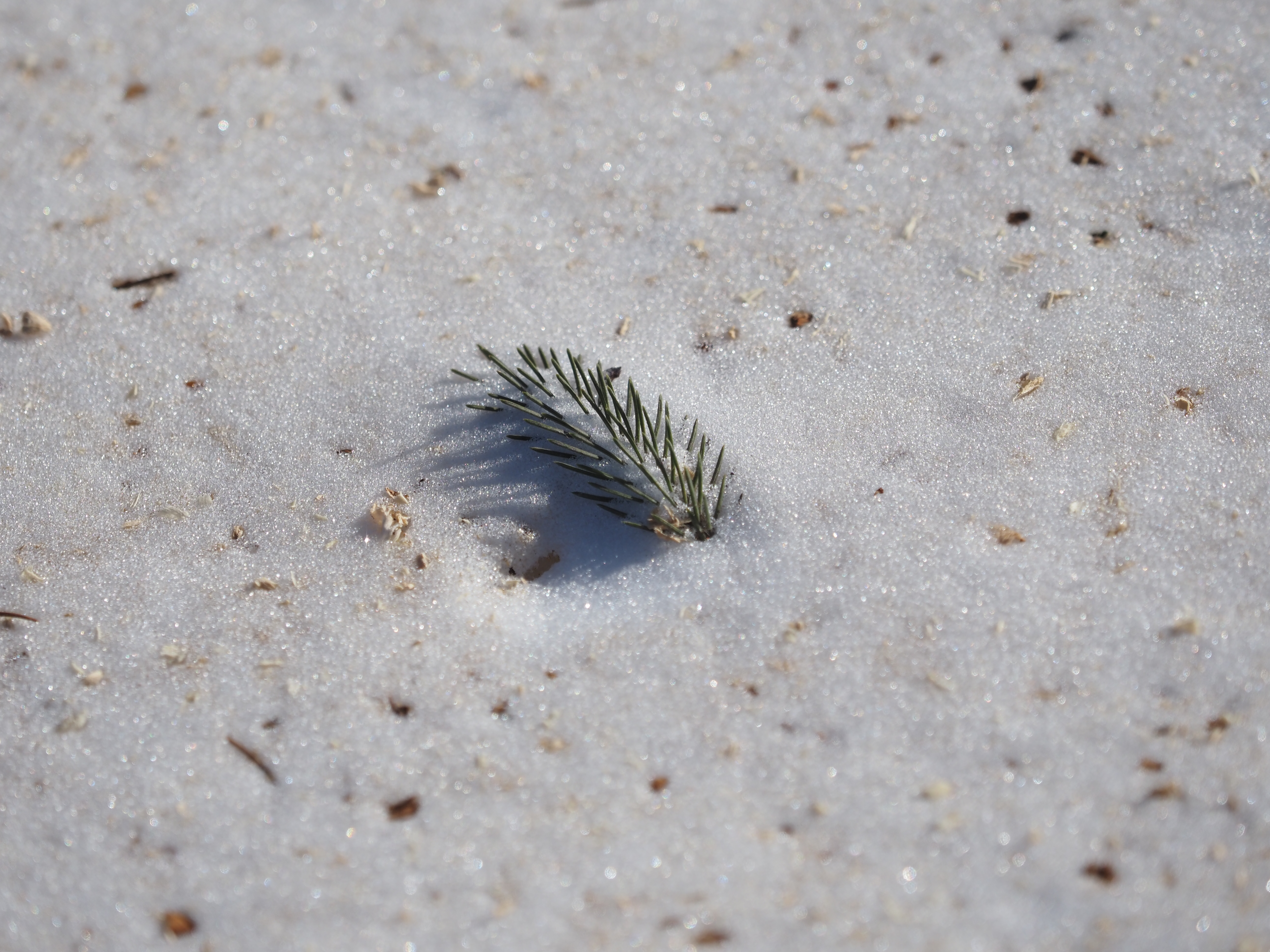 - #photo-a-day/2025 #place/Canada/Manitoba/Winnipeg/River Heights #plants/part/branch #plants/tree/pine #shadow #water/frozen/snow