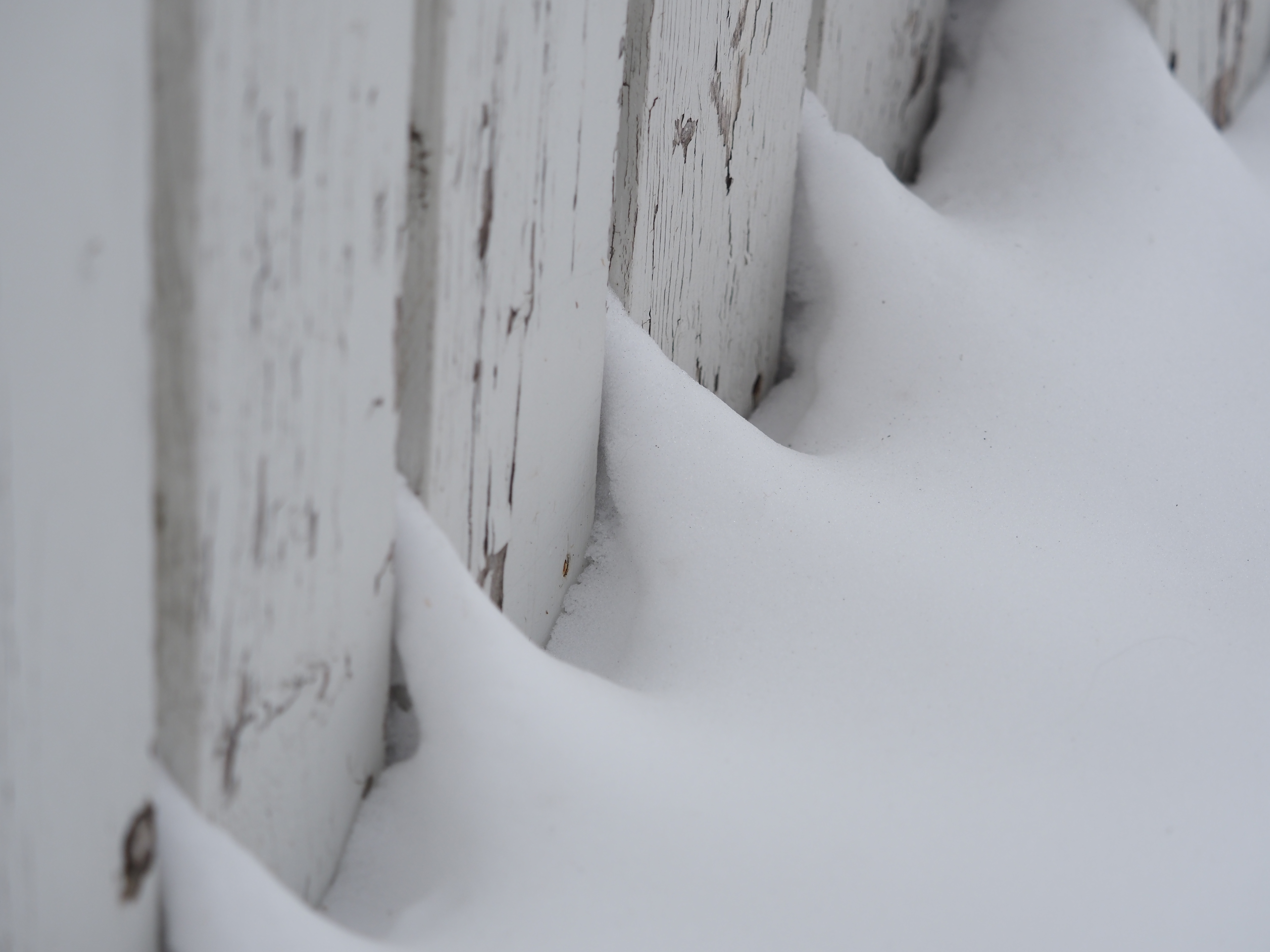 - snow sifted through a fence