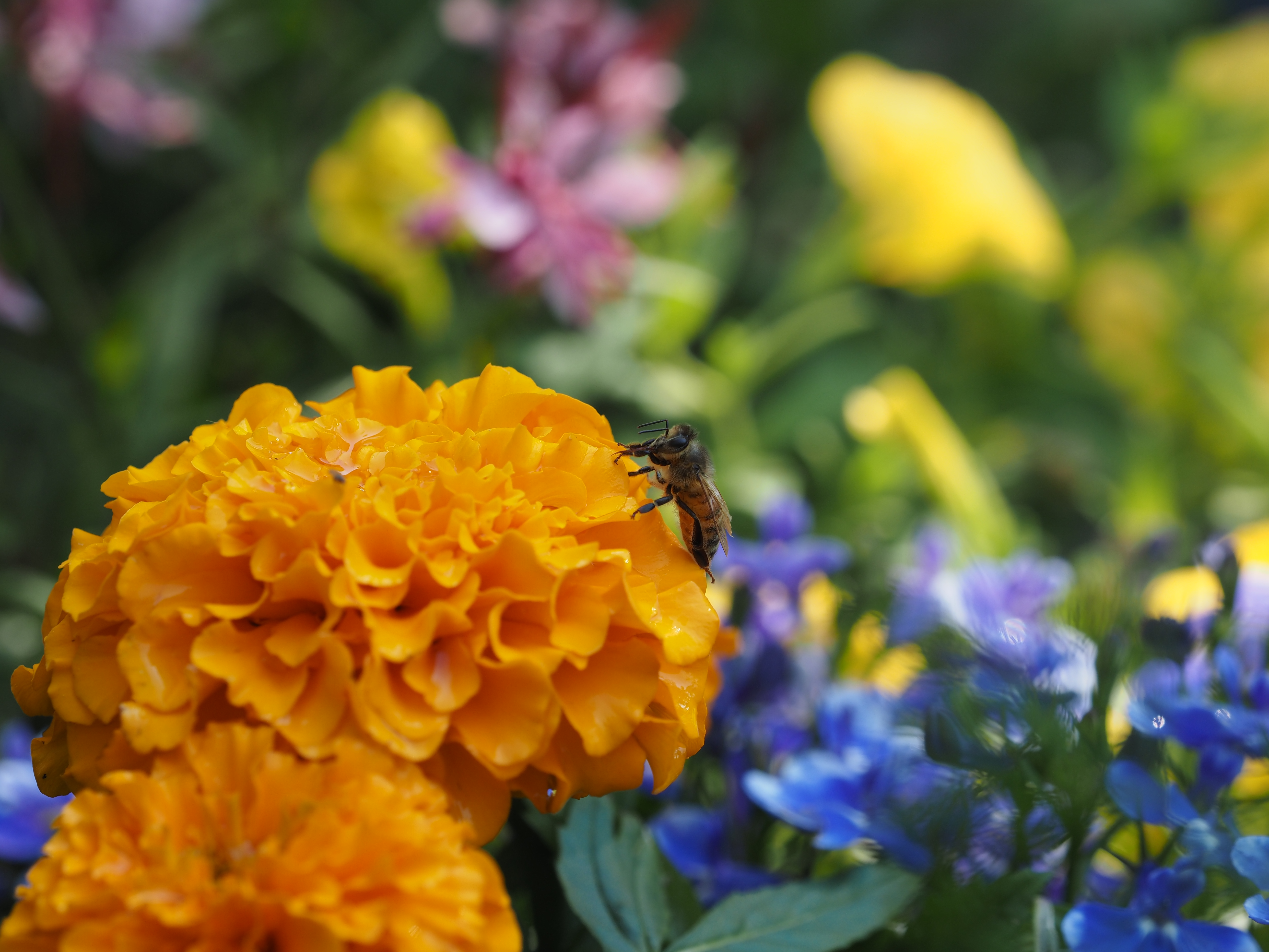 - #animals/insect/bee/honey #place/Canada/Manitoba/Winnipeg/Fort Richmond #plants/forb/Marigold #plants/part/flower