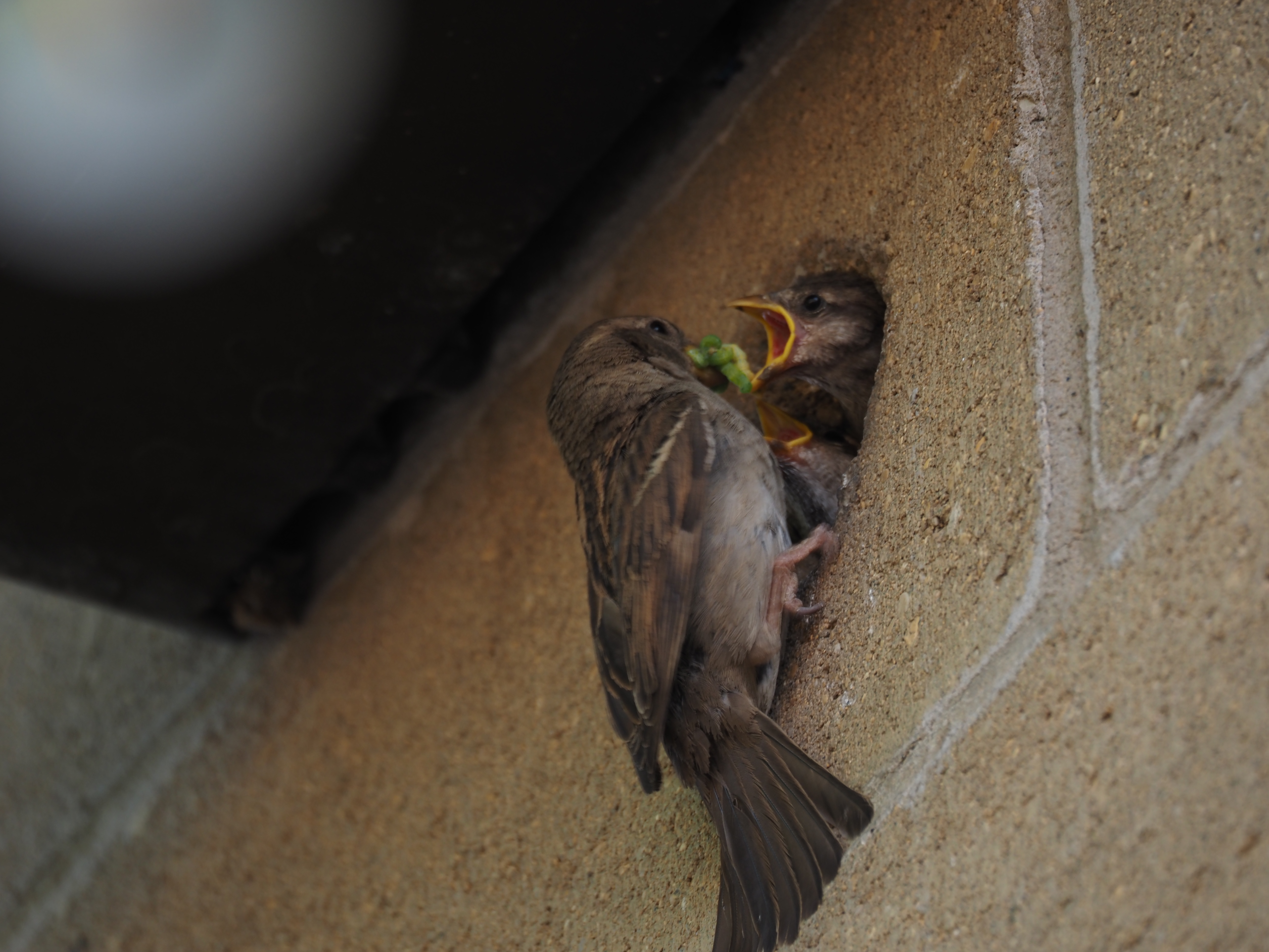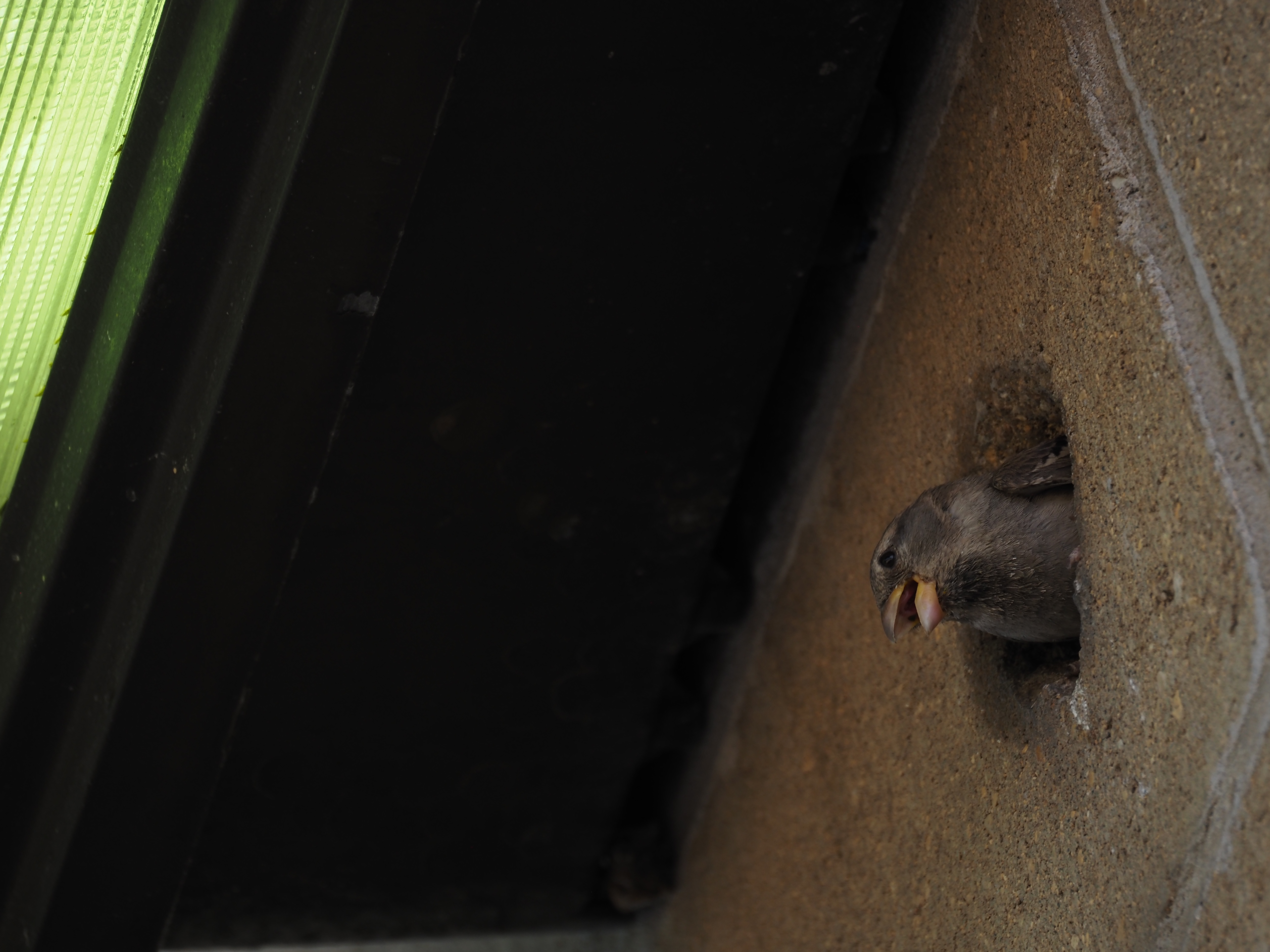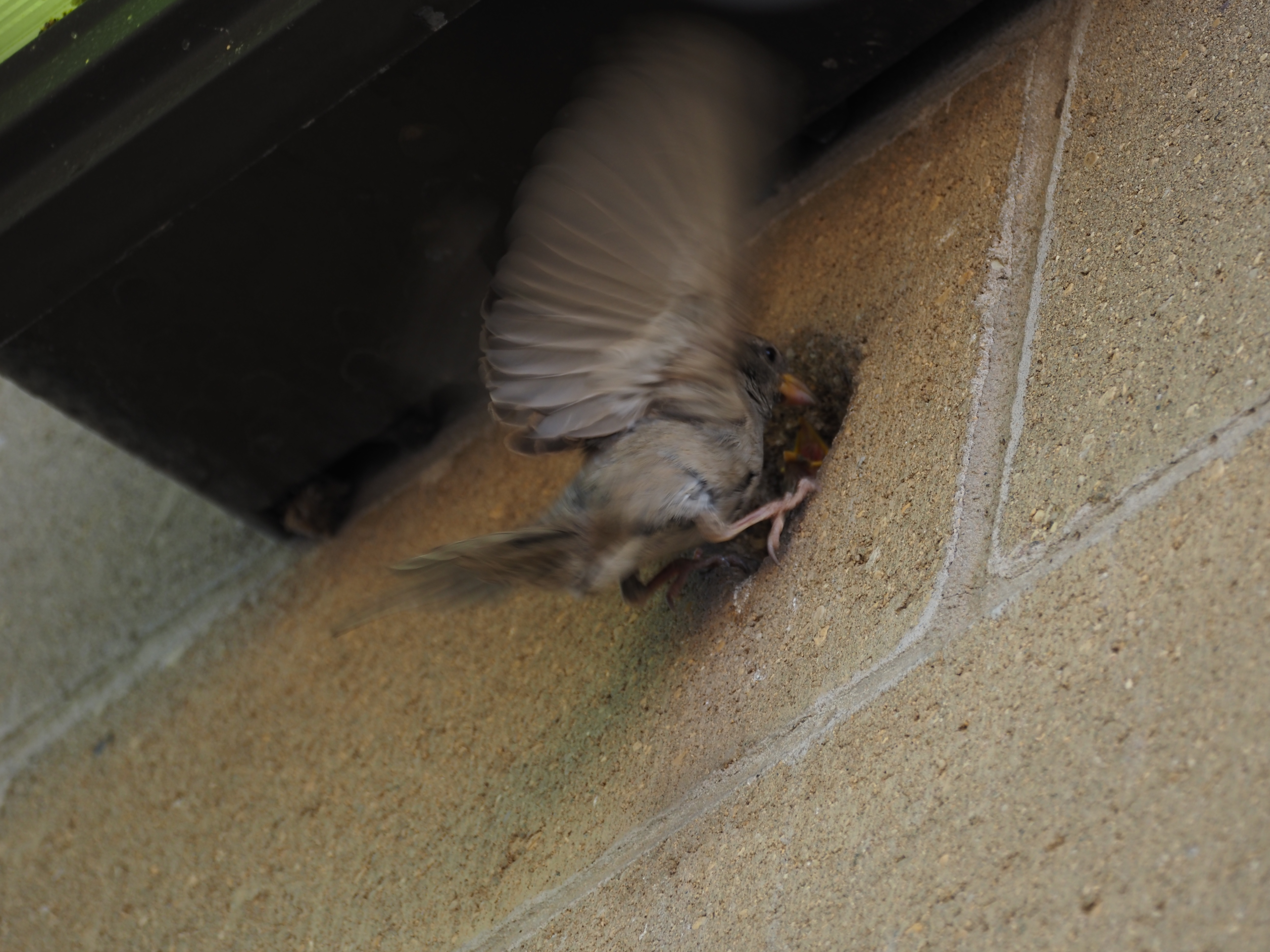 - #animals/baby/bird #animals/bird/Sparrow #architecture/building/brewery/Sookram's #camera/blur/motion #hole #place/Canada/Manitoba/Winnipeg/Osborne Village
