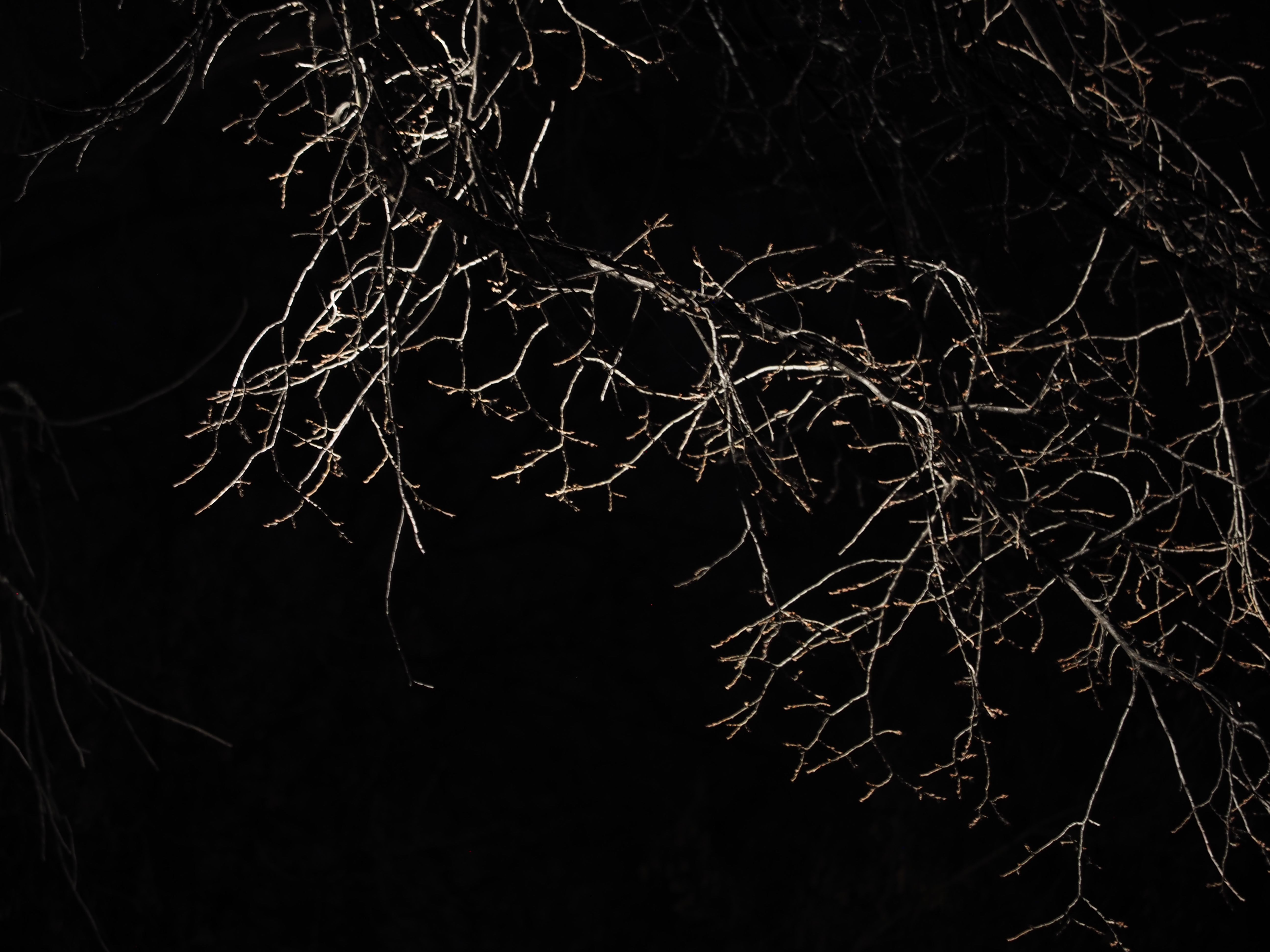 - bare branches lit by a streetlight
