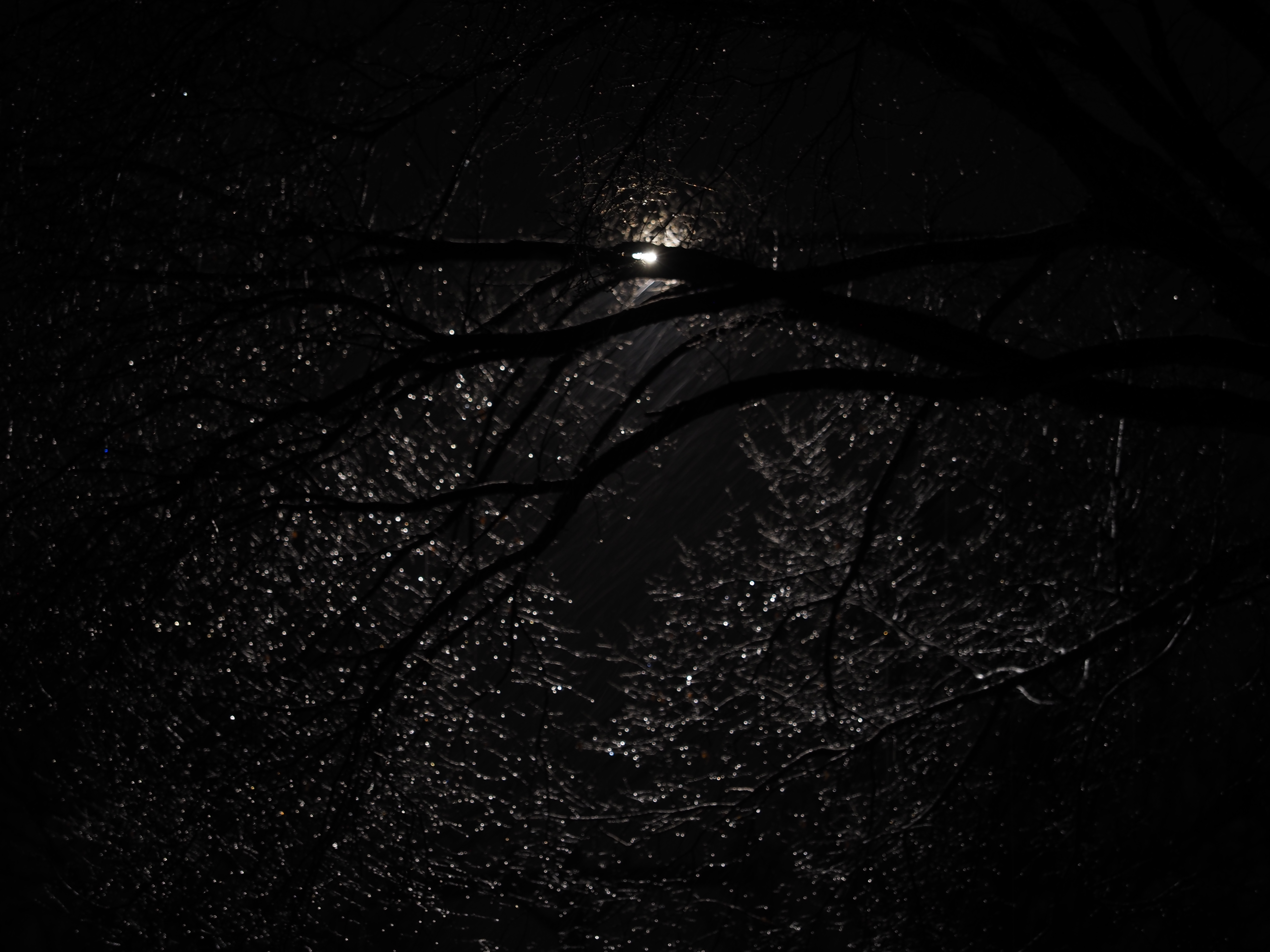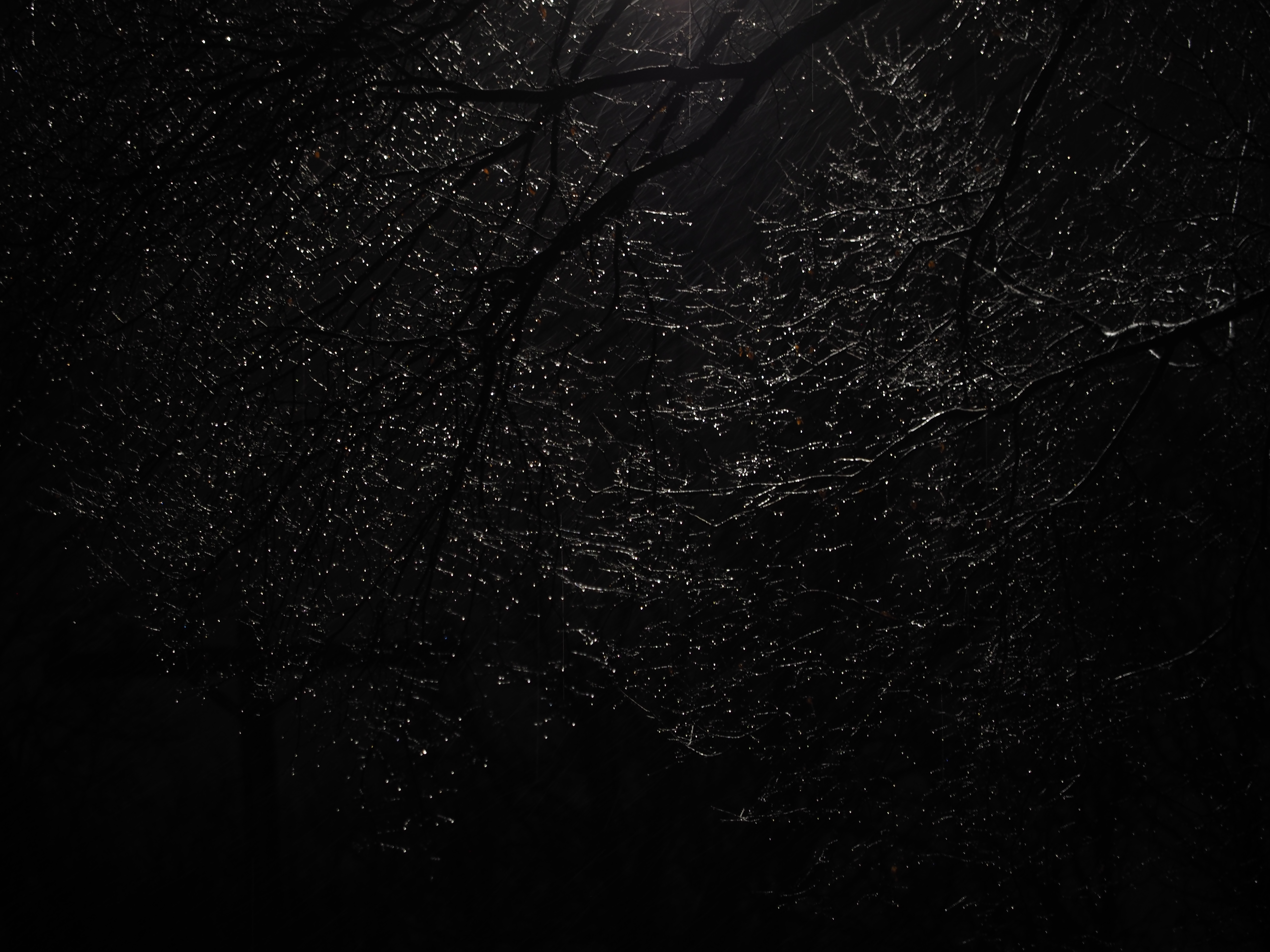 - wet branches lit by streetlight