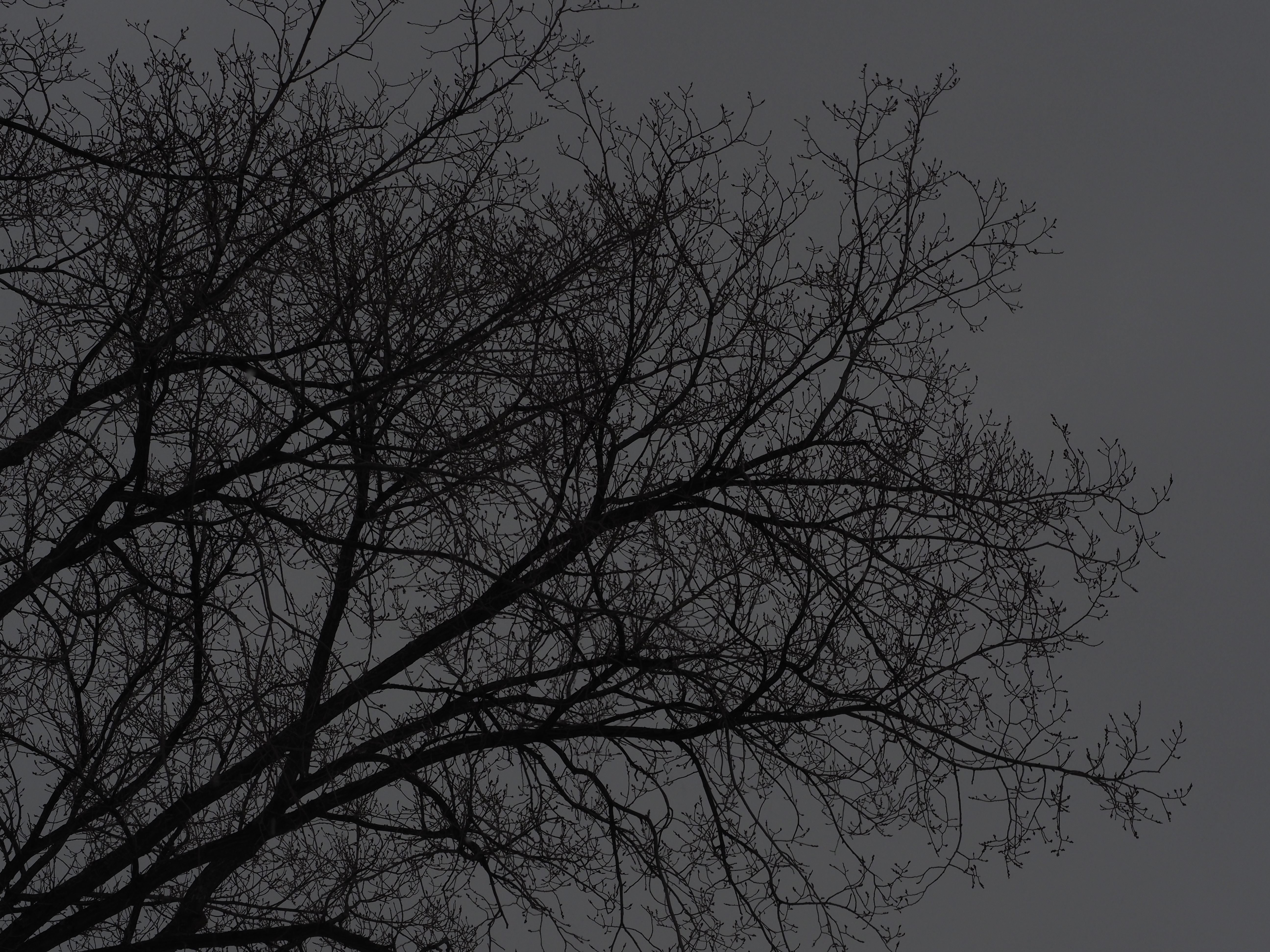 - bare branches against a grey sky