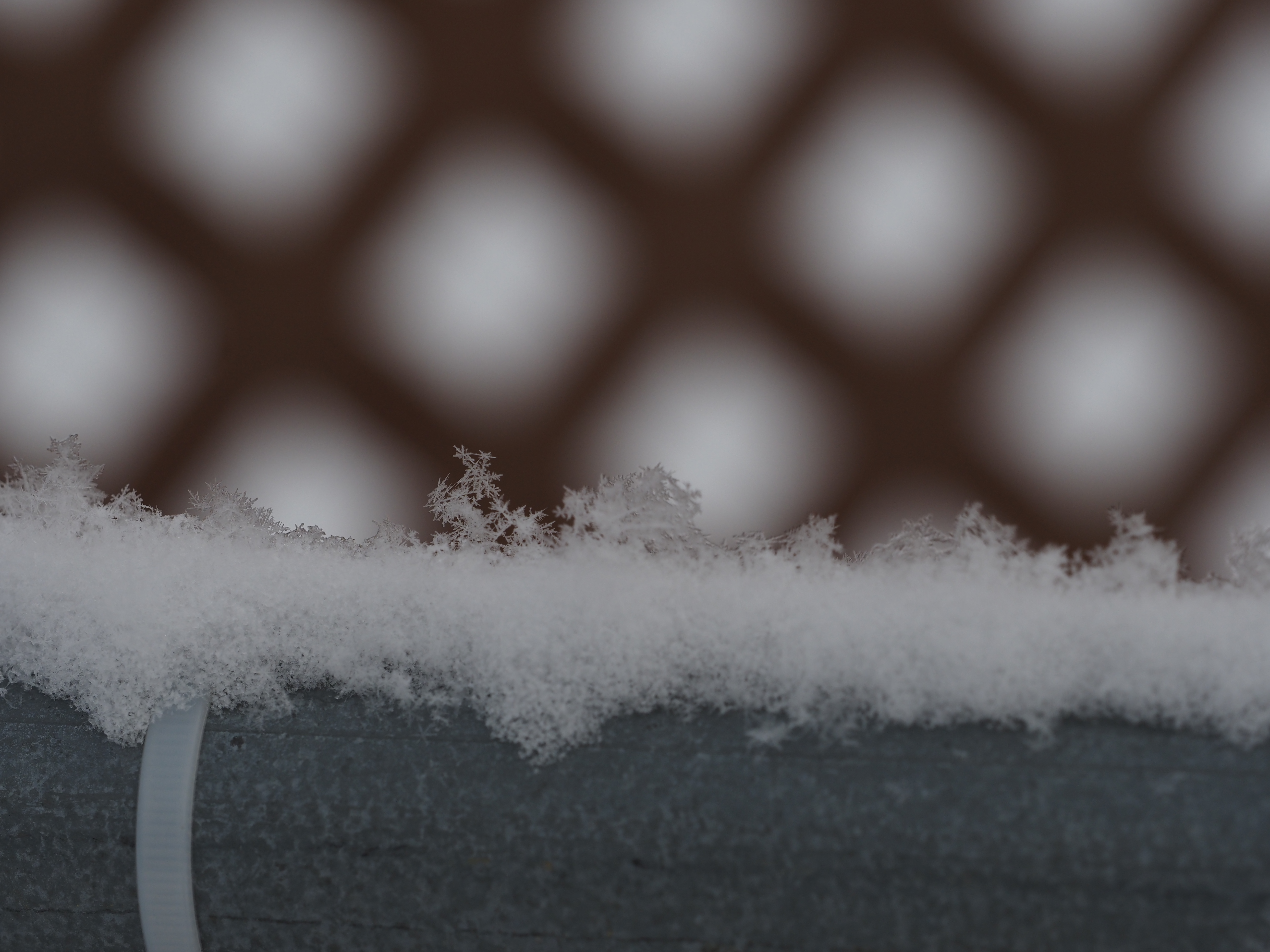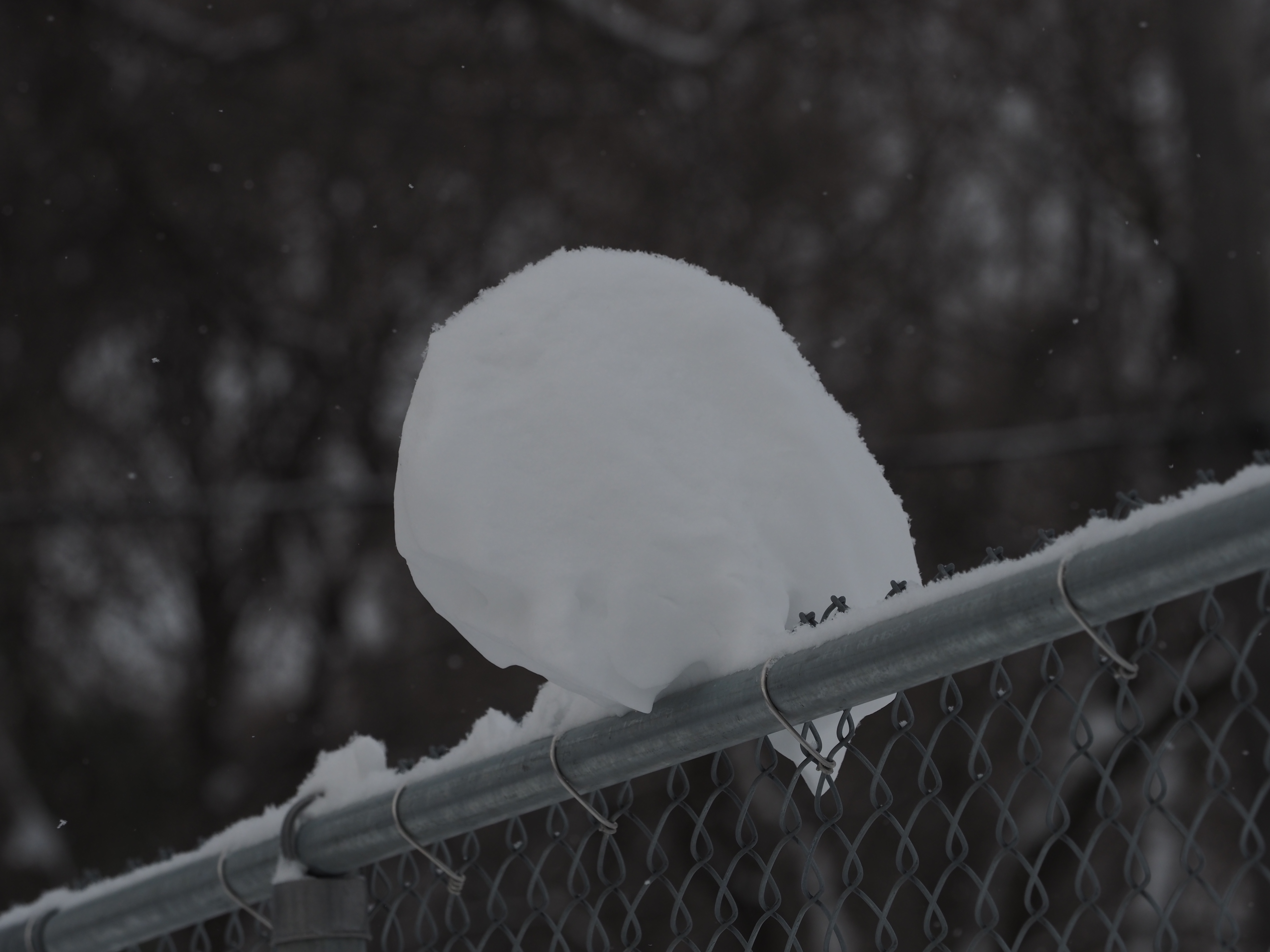 - a block of snow on top of a a chain-link fence