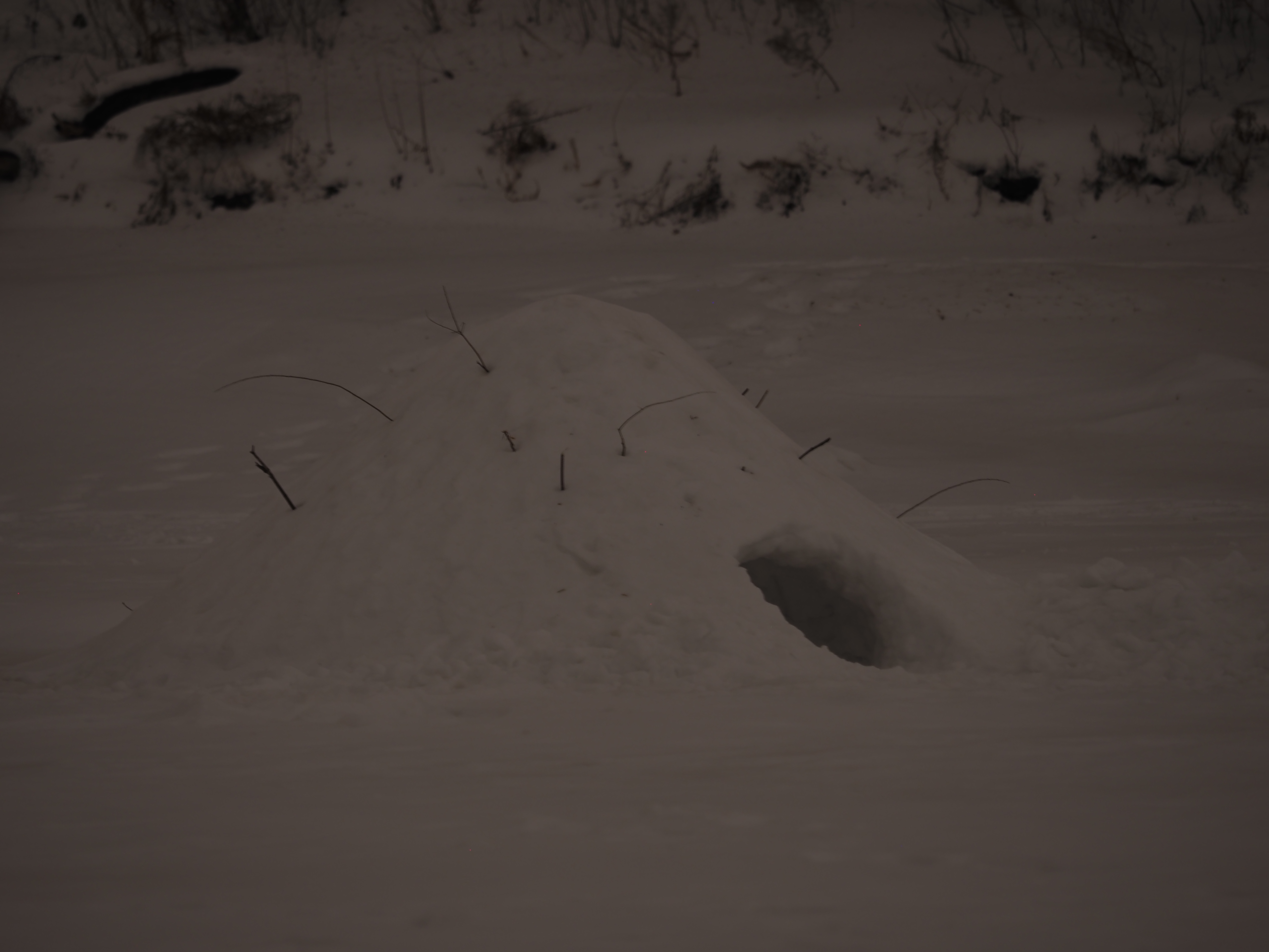 - #architecture/hut/snow/quinzhee #place/Canada/Manitoba/Winnipeg/trails/River #water/frozen/snow #water/surface/flowing/river/Assinaboine