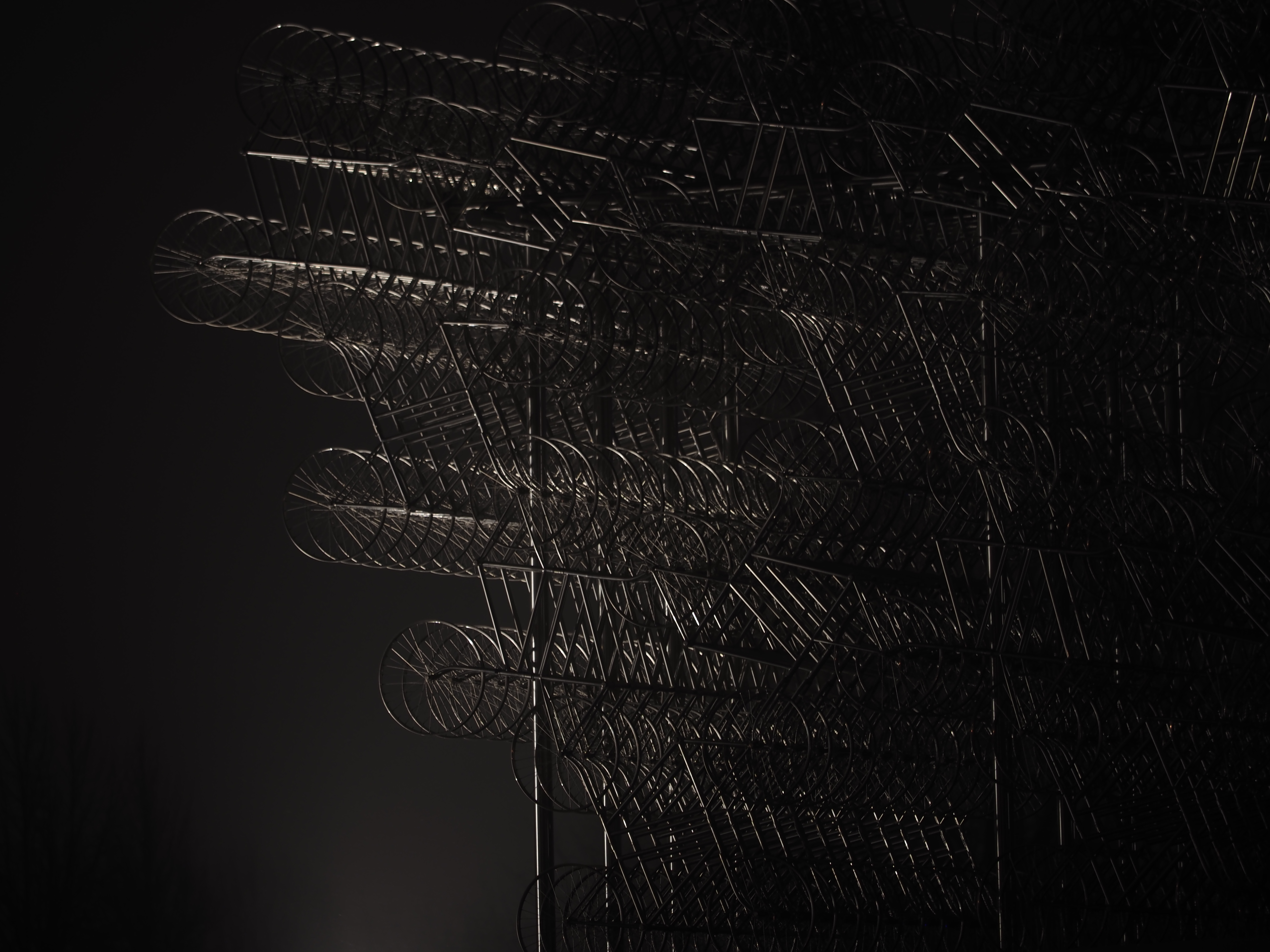 - #place/Canada/Manitoba/Winnipeg/parks/The Forks #sculpture/Ai Weiwei/Forever Bicycles #water/weather/fog