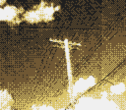 - A 4-colour pixelated picture of traintracks and trains split into 4 shots