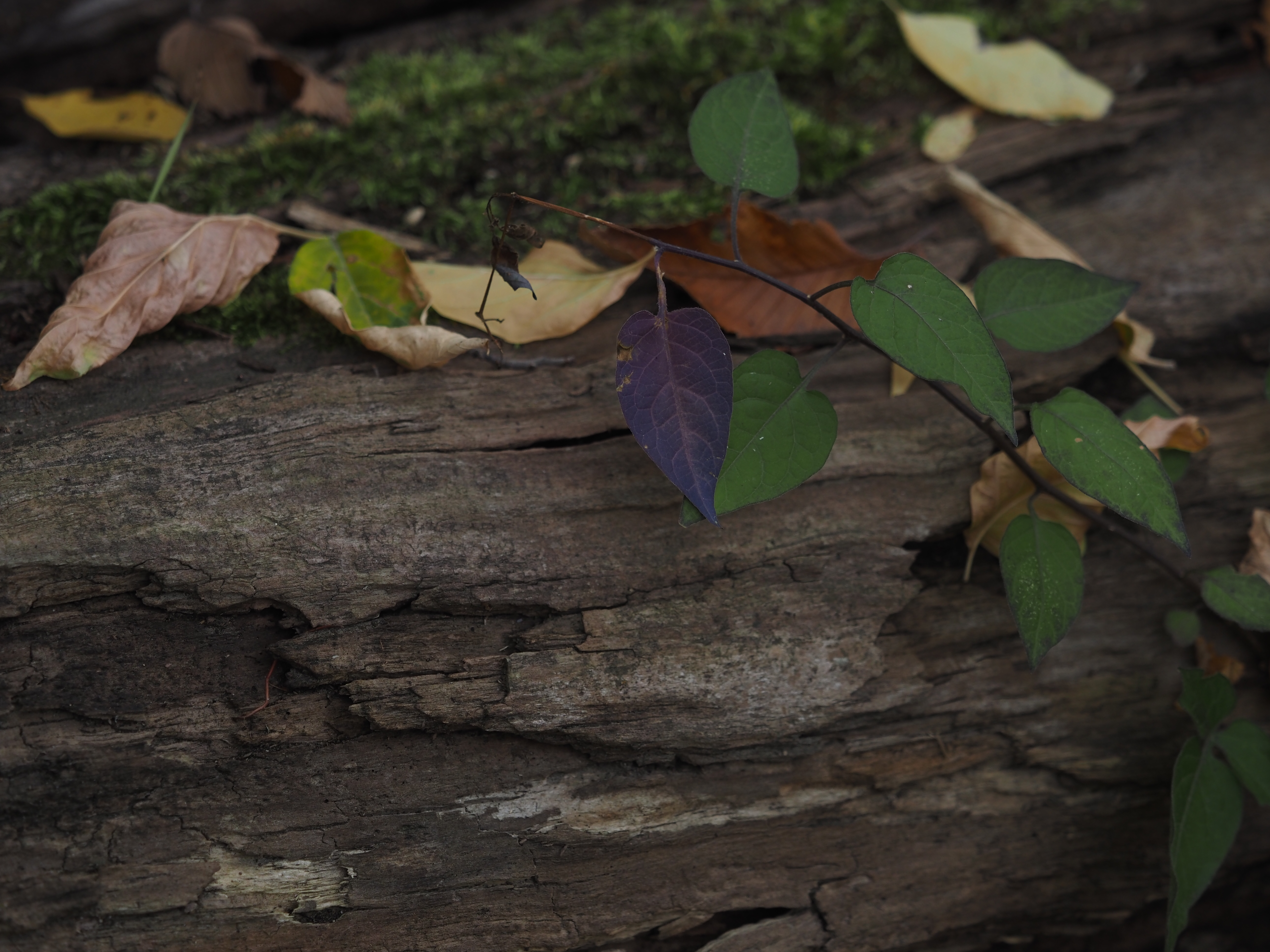 - #place/Canada/Manitoba/Winnipeg/Tuxedo #plants/dead/log #plants/part/leaf #plants/vine/Bitter Nightshade