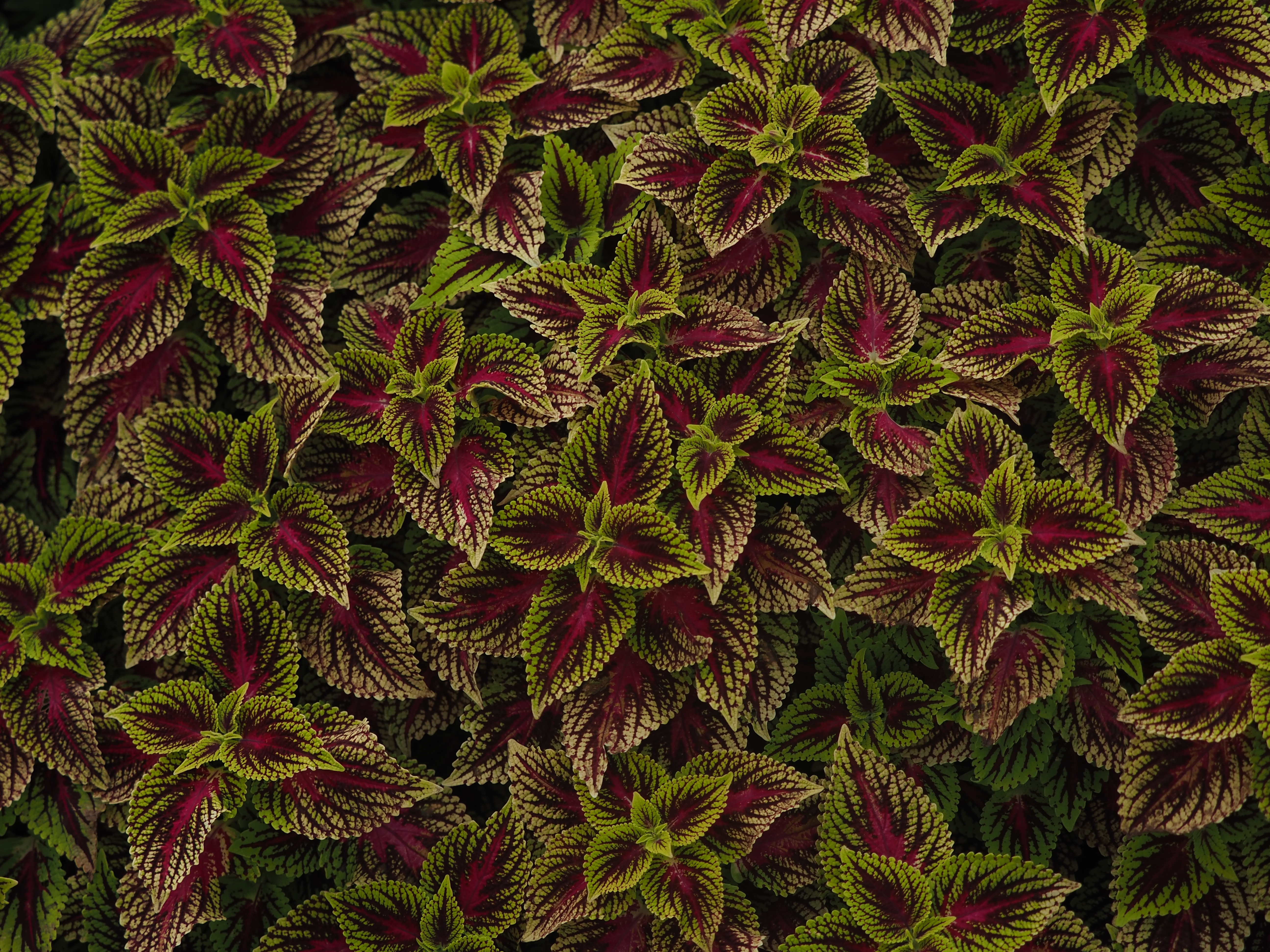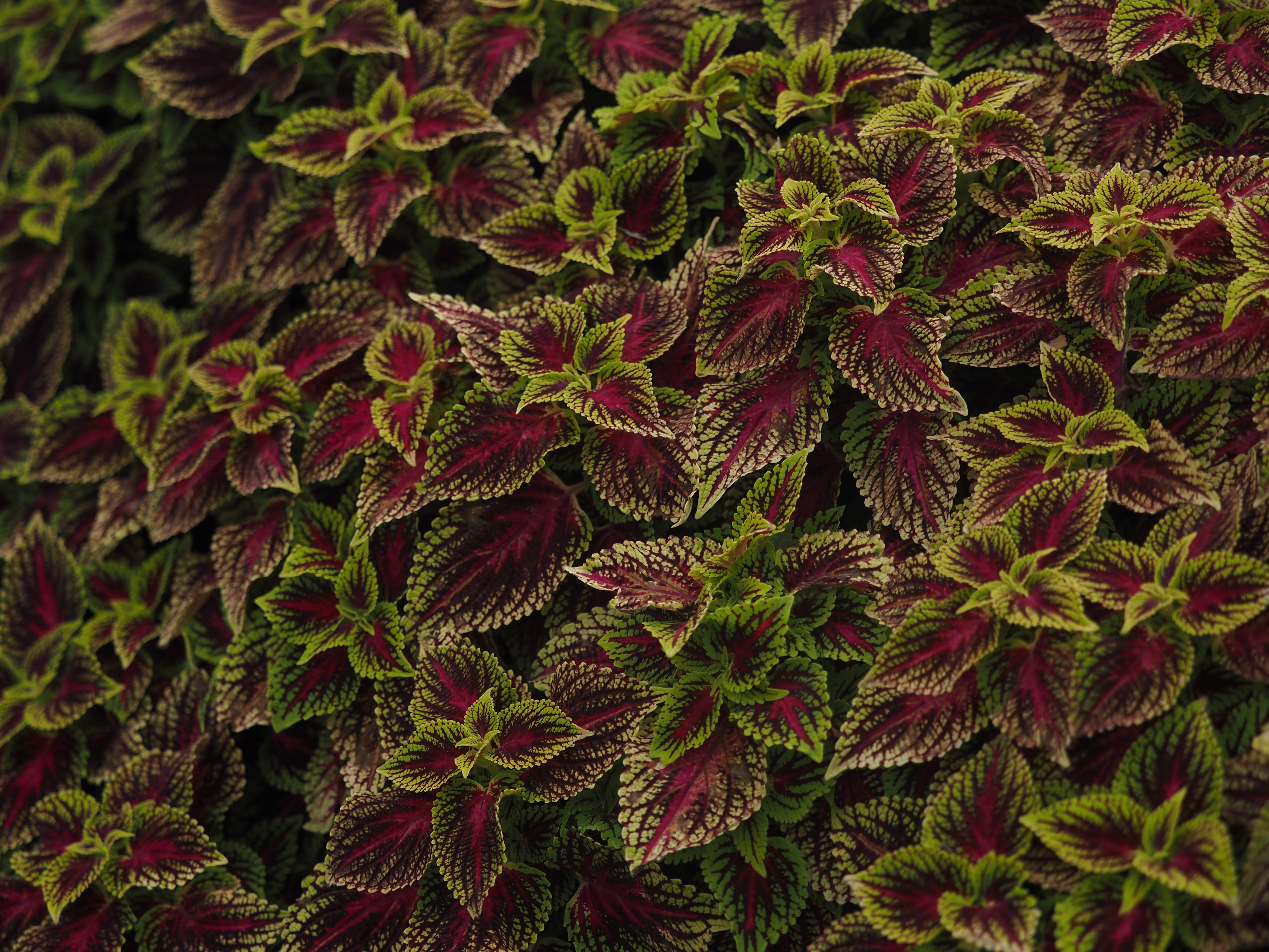 - #pattern/verigation #place/Canada/Manitoba/Winnipeg/Tuxedo #place/Canada/Manitoba/Winnipeg/parks/Assinaboine #plants/forb/coleus #plants/part/leaf