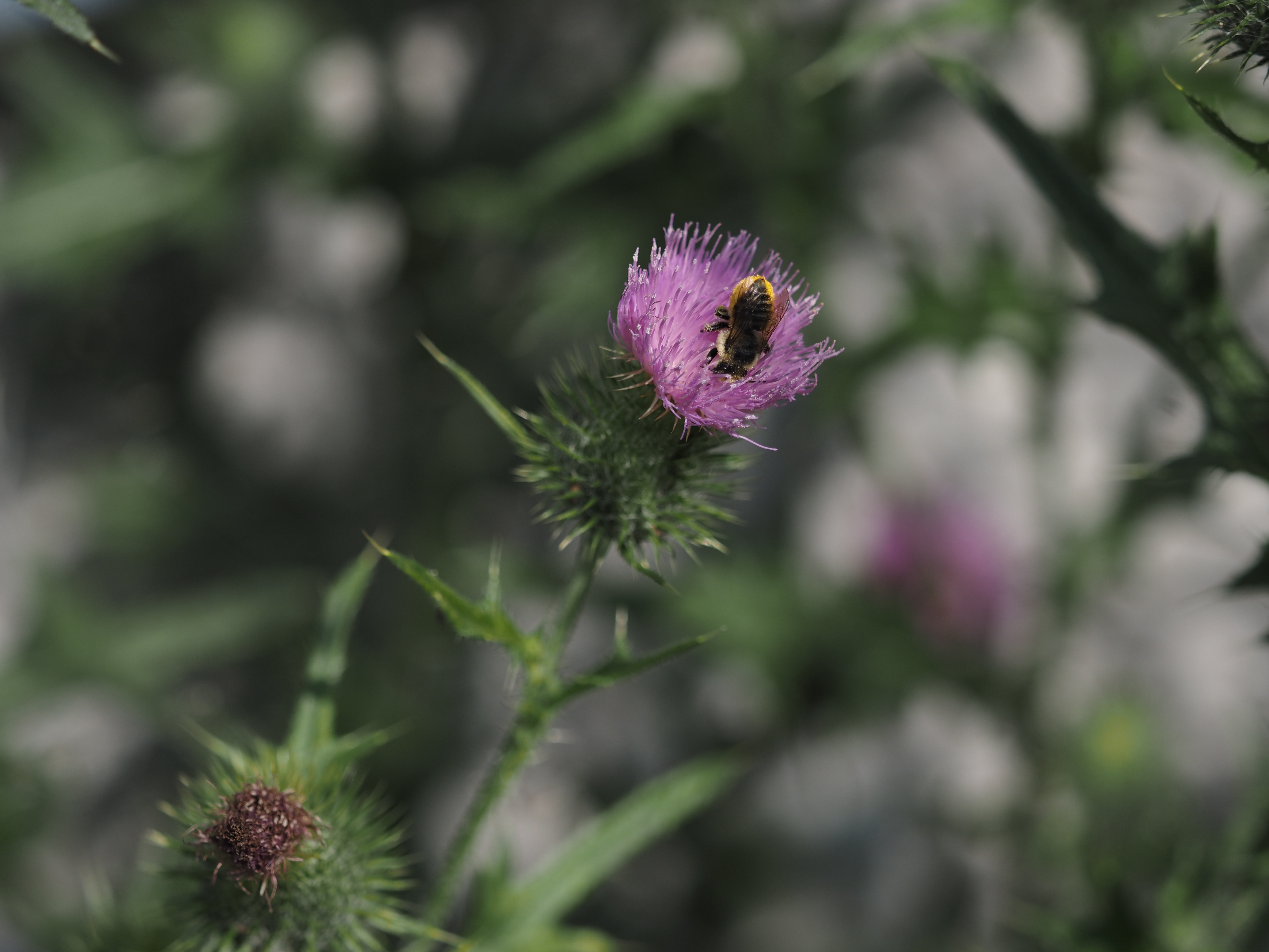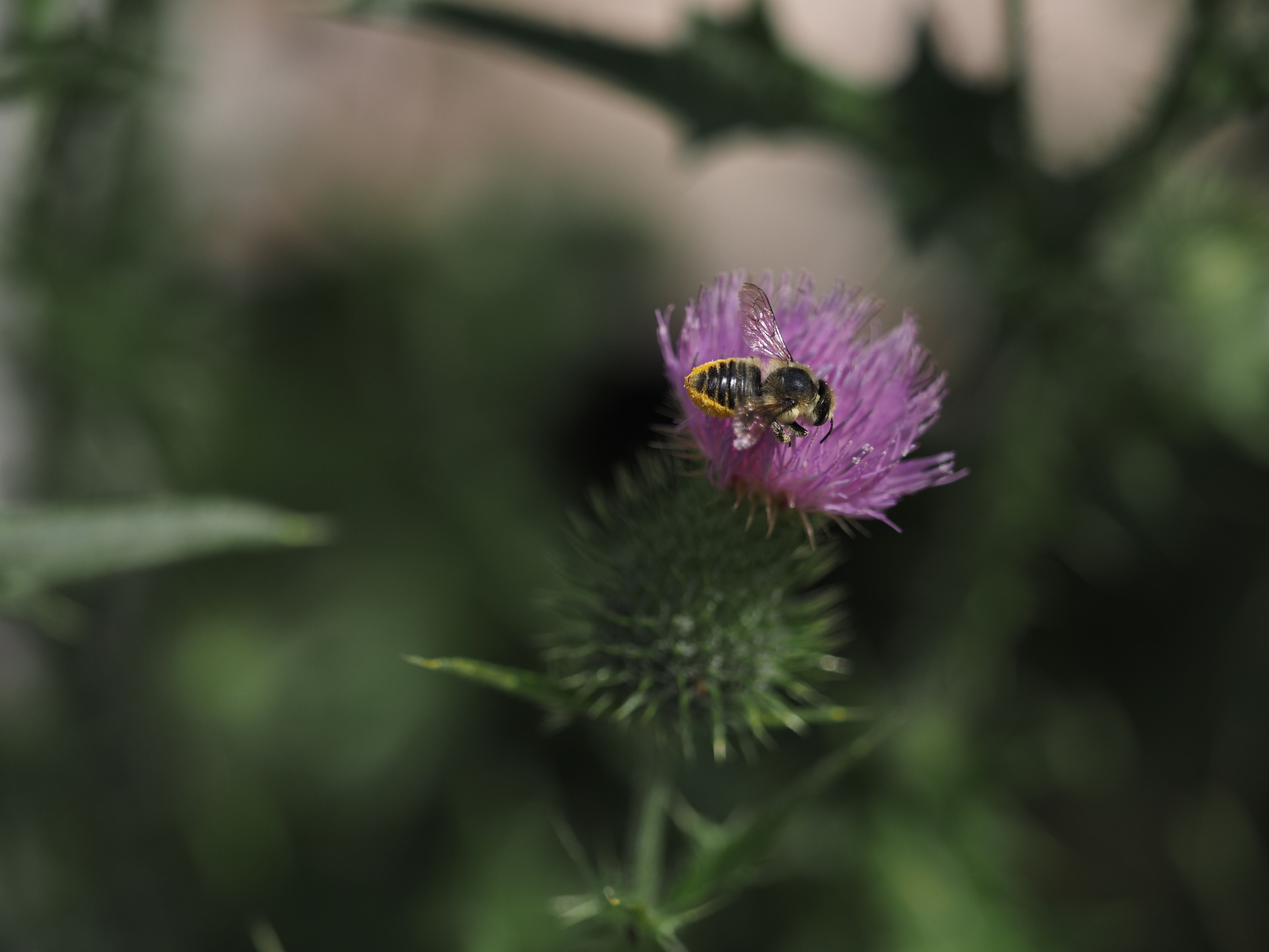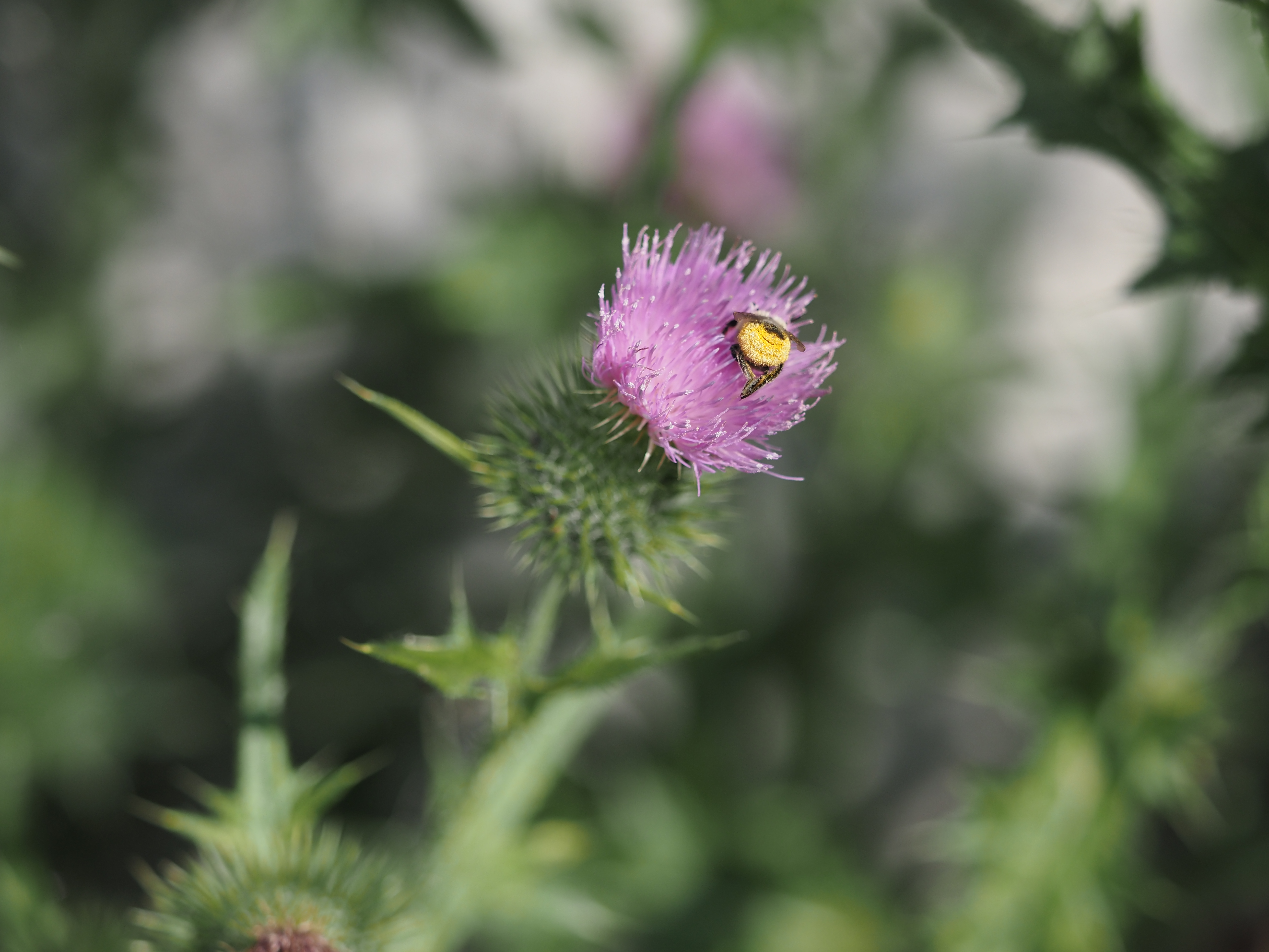 - #animals/insect/bee/Leaf-Cutter #photo-a-day/2023 #place/Canada/Manitoba/Winnipeg/River Heights #plants/forb/thistle/Scottish #plants/part/flower