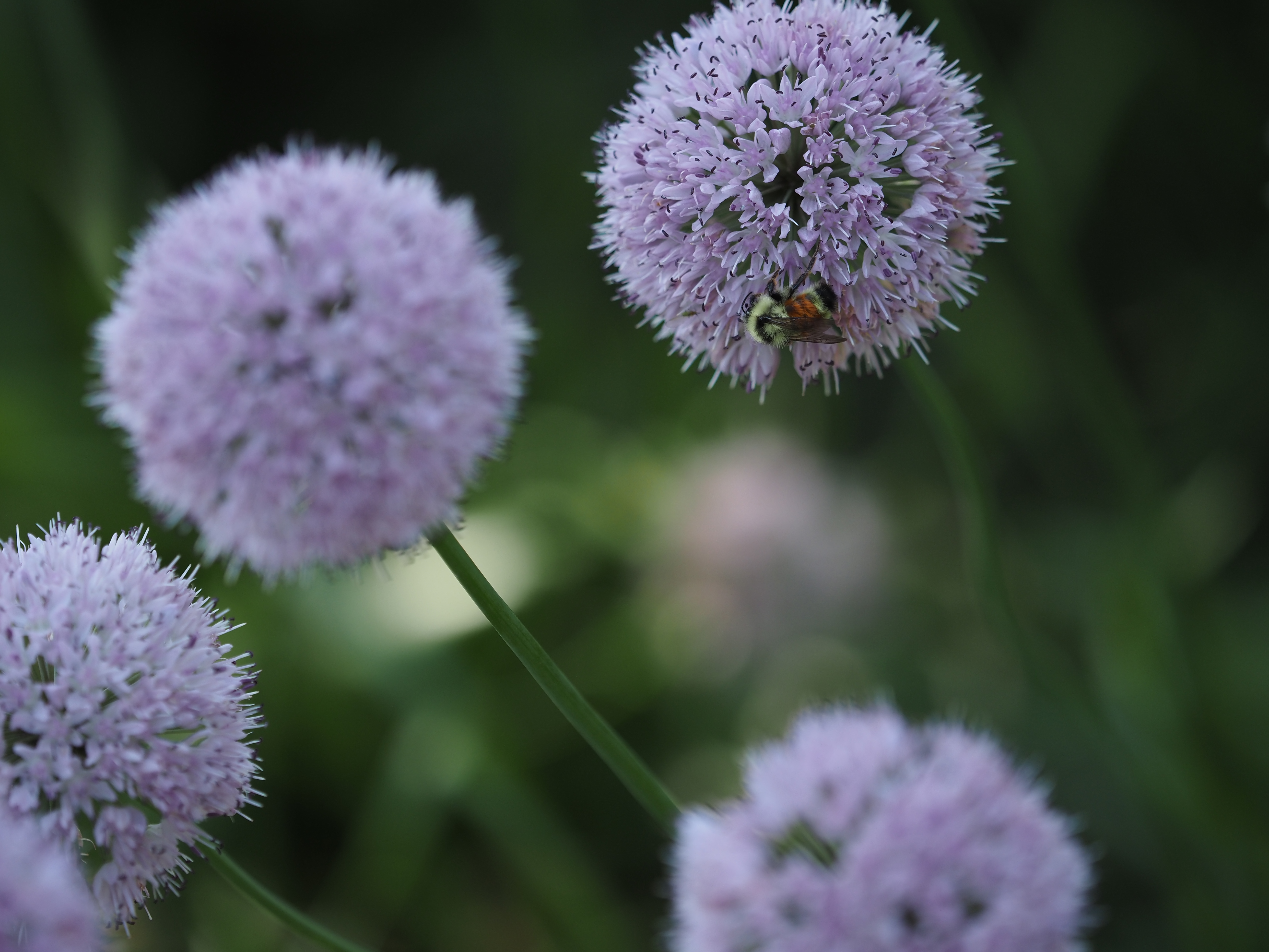 - #animals/insect/bee/bumble/Hunt's #place/Canada/Manitoba/Winnipeg/River Heights #plants/forb/Allium #plants/part/flower