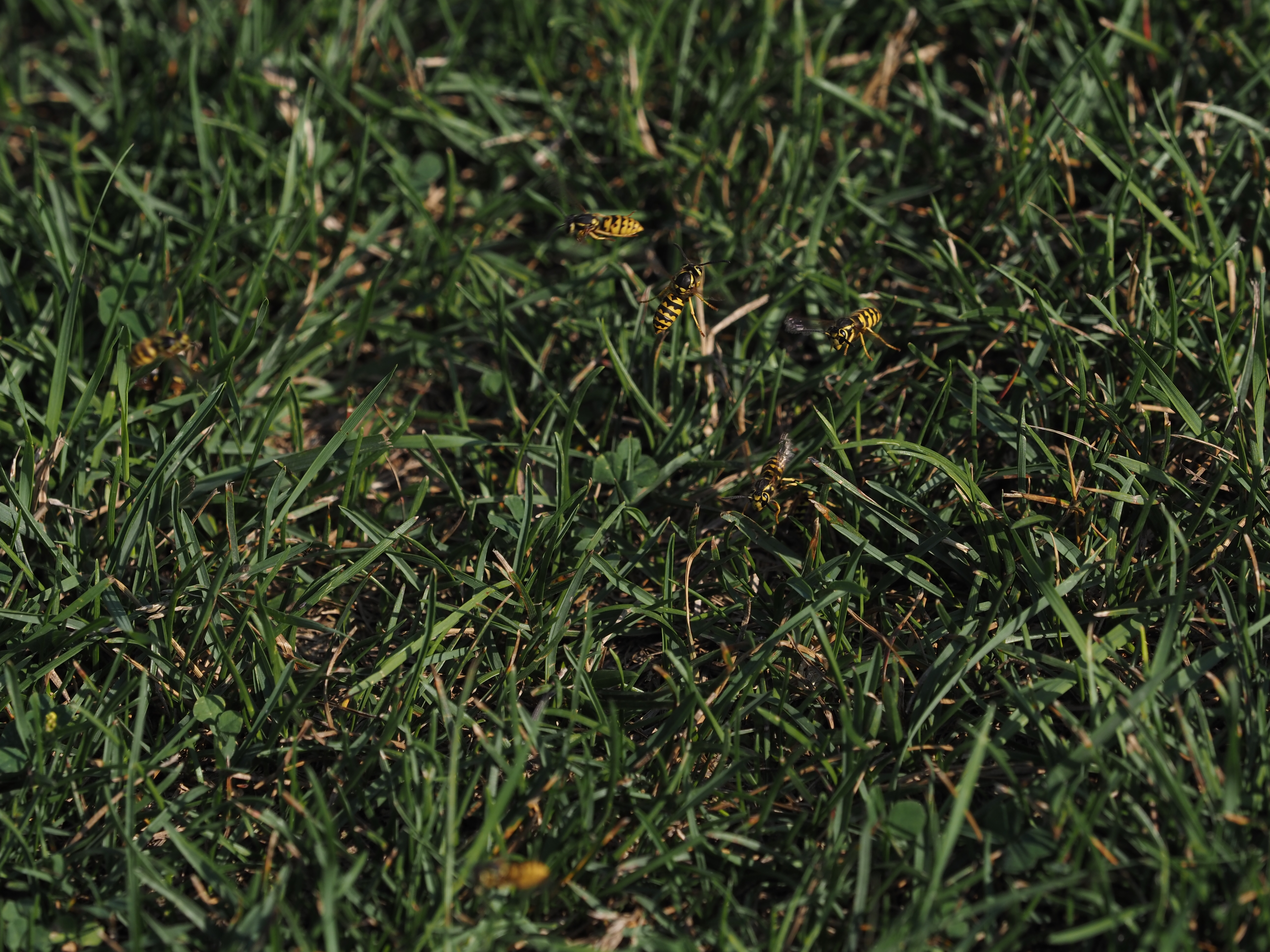 - #actions/flying #animals/insect/wasp/European Paper #place/Canada/Manitoba/Winnipeg/River Heights #plants/grass
